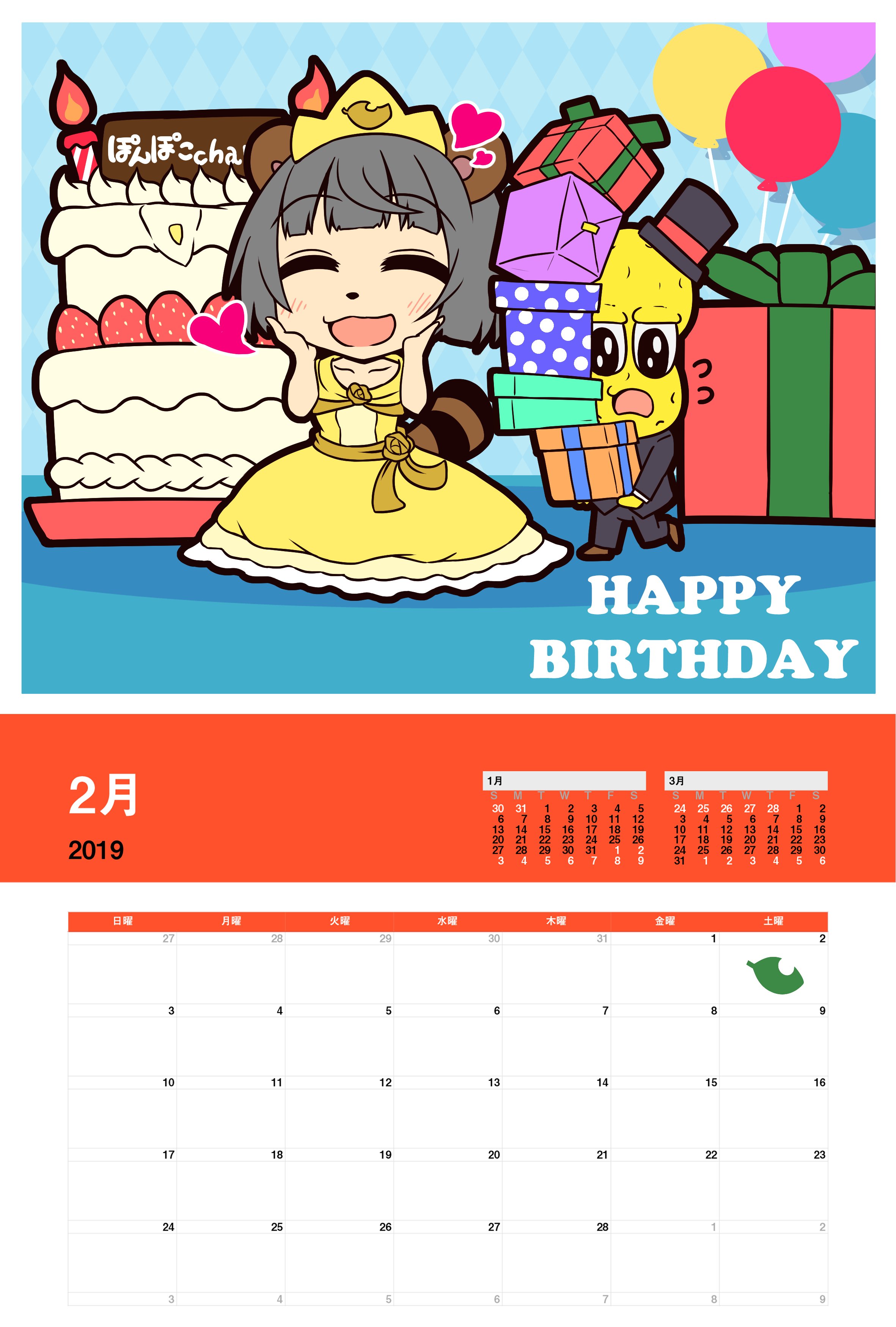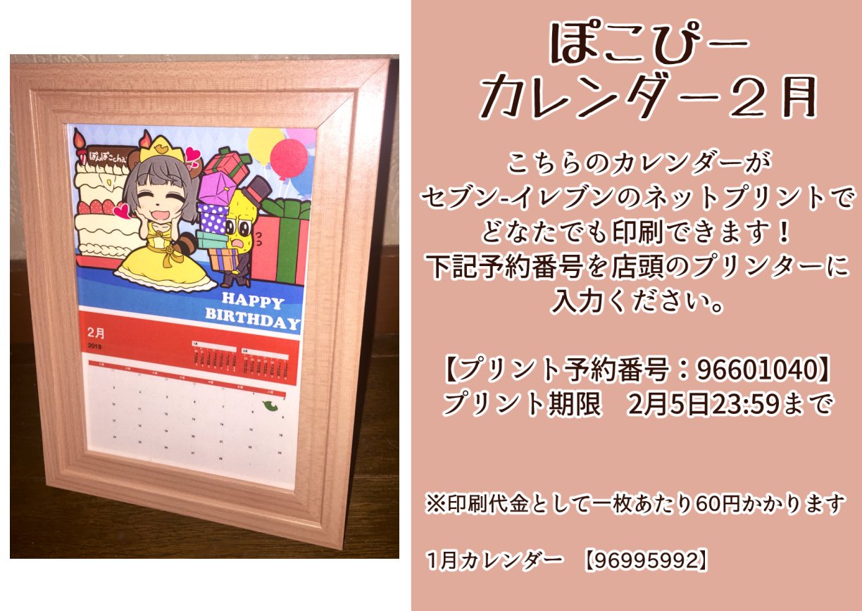 こちら2月のカレンダーになります。誕生月!! ネットプリントで全国に届け!! #ぽこあーと #オシャレになりたいピーナッツくん
