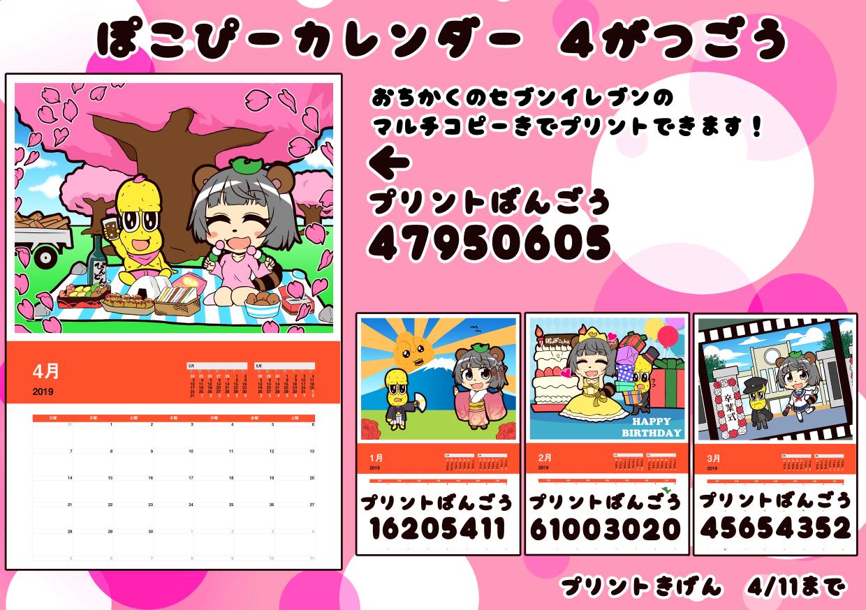 おそくなりましたああああああああ!!! ぽこぴーカレンダー4月号です!!!!! セブイレで買い物するついでにどうぞ!! #ぽこあーと #オシャレになりたいピーナッツくん