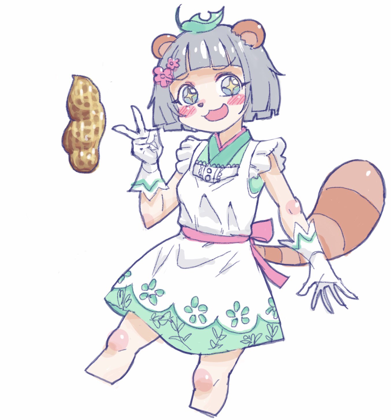 もう夏だけどお気に入りの春服を着るぽんぽこちゃんとピーナッツ描きました #ぽこあーと