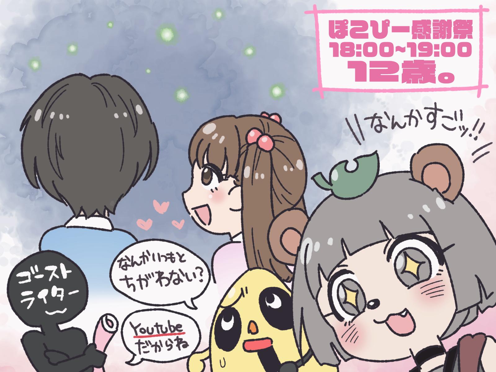 締めは12歳。出張版!狙ったのかと思うくらいいつもと雰囲気違くて笑った MVPのゴーストライター入った?は秀逸すぎて、ここだけ監督と脚本違う感じすごかったわ...アニメとかであるわ..... #ぽんぽこ生放送 #ぽこあーと