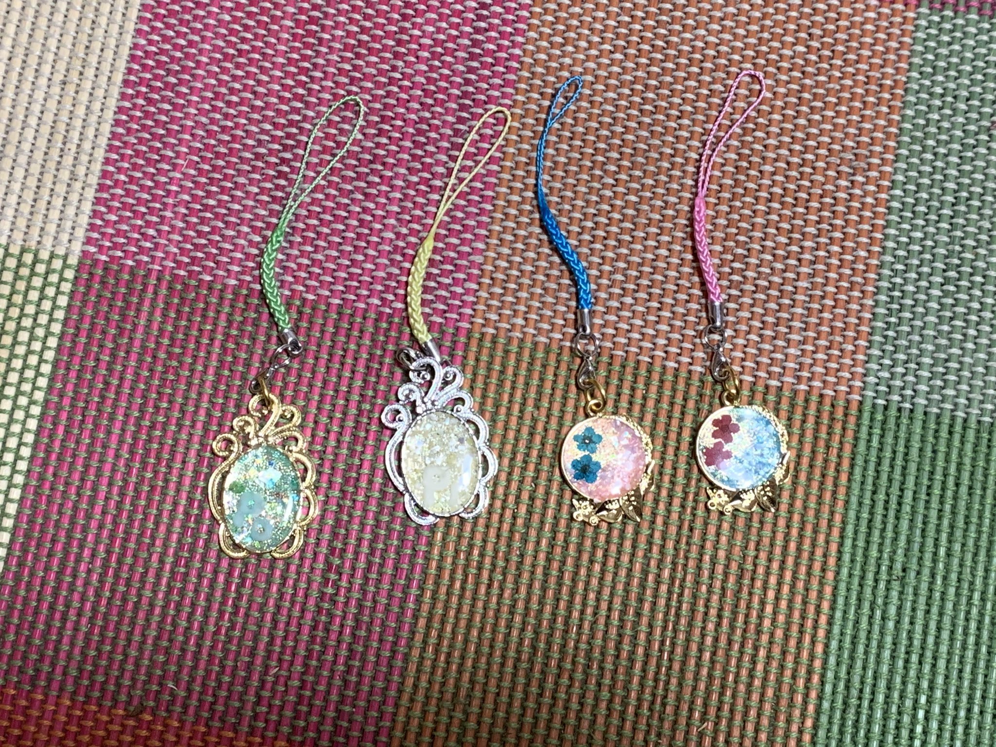 ぽこぴーチェキ会でお手紙と一緒に入れたプレゼント!レジンのイメージアクセサリーです!おめシスの分も! 左からぽんぽこ、ピーナッツくん、リオちゃん、レイちゃんです #ぽこぴーチェキ会 #ぽこあーと #オシャレになりたいピーナッツくん #おめシスはいいぞ