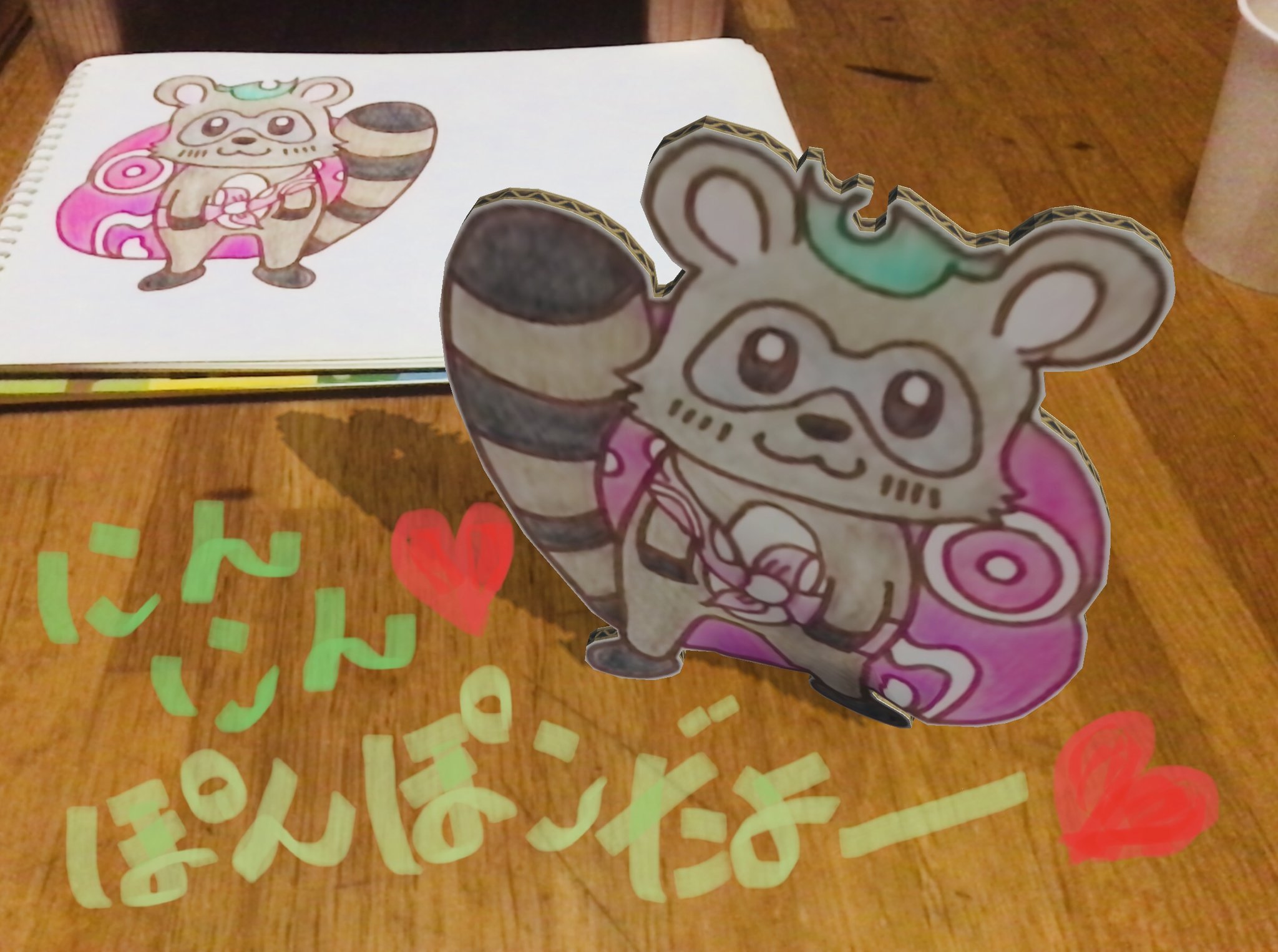 らくがきしたぽんぽこが可愛すぎたので、らくがきARで動かした✨今にも『ぽんぽこだよ!』っていいそうなかわゆさよ……最高かよ。 #ぽこあーと #ぽんぽこ #らくがきAR