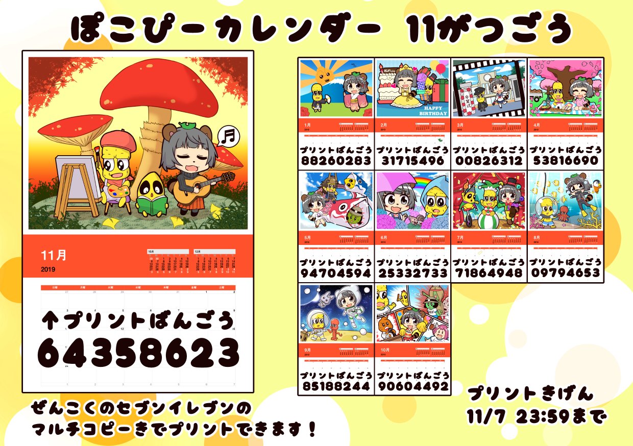 ぽこピーカレンダー11月号です!! 今年って2019年でしたよね!!?? #ぽこあーと #オシャレになりたいピーナッツくん