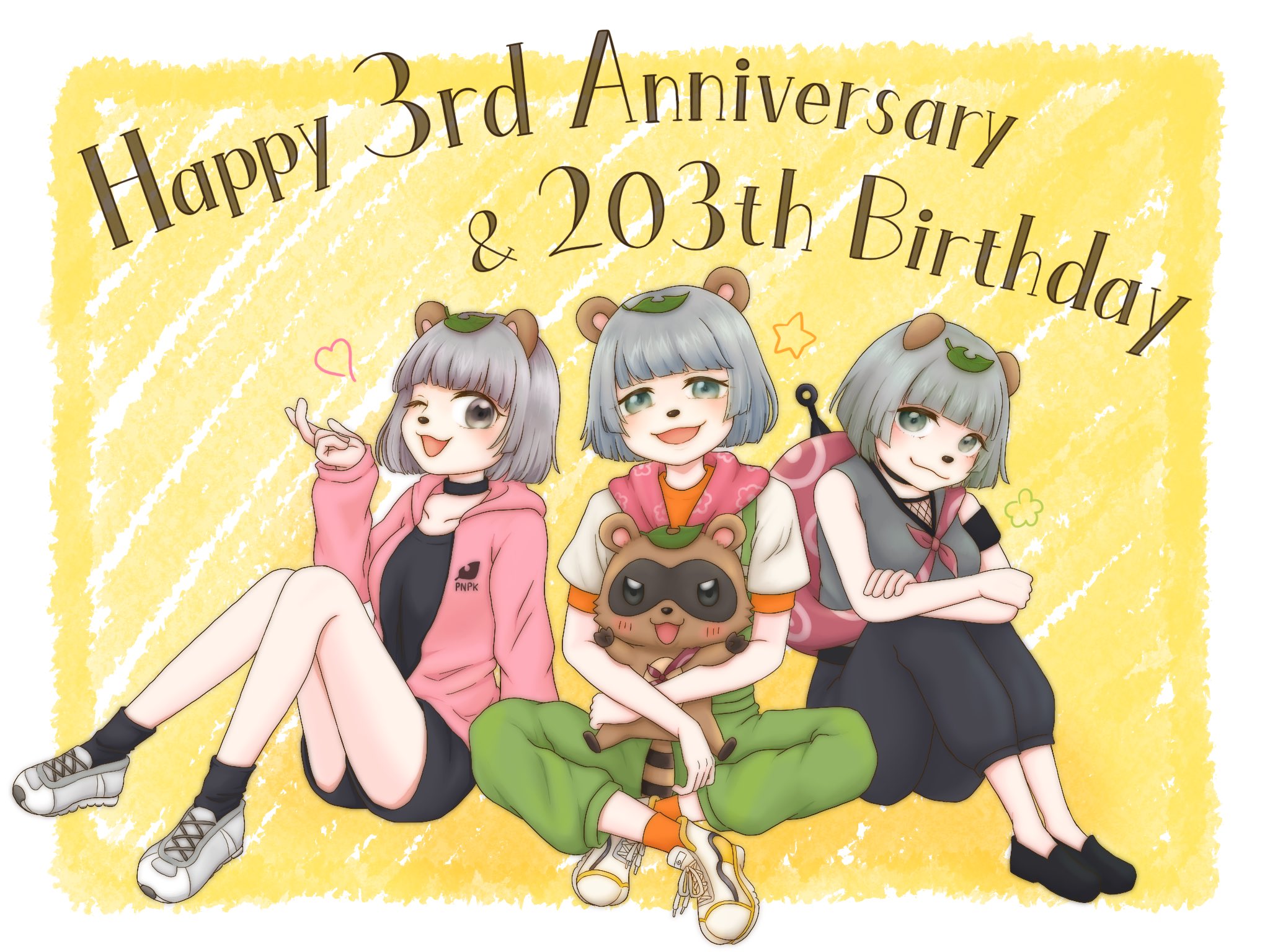 3周年&203歳おめでとう🎉‼️ 3周年だから3人(+1匹)のぽんぽこさん❣️ ストイックで優しくてファン想いなぽんぽこさんがだ〜いすき🥺💗 この1年応援し続けられて本当に幸せだった〜! いつも本当に心の支えになってます、ありがとう🌟 これからもたくさん応援させてね #ぽんぽこ生誕祭2021 #ぽこあーと