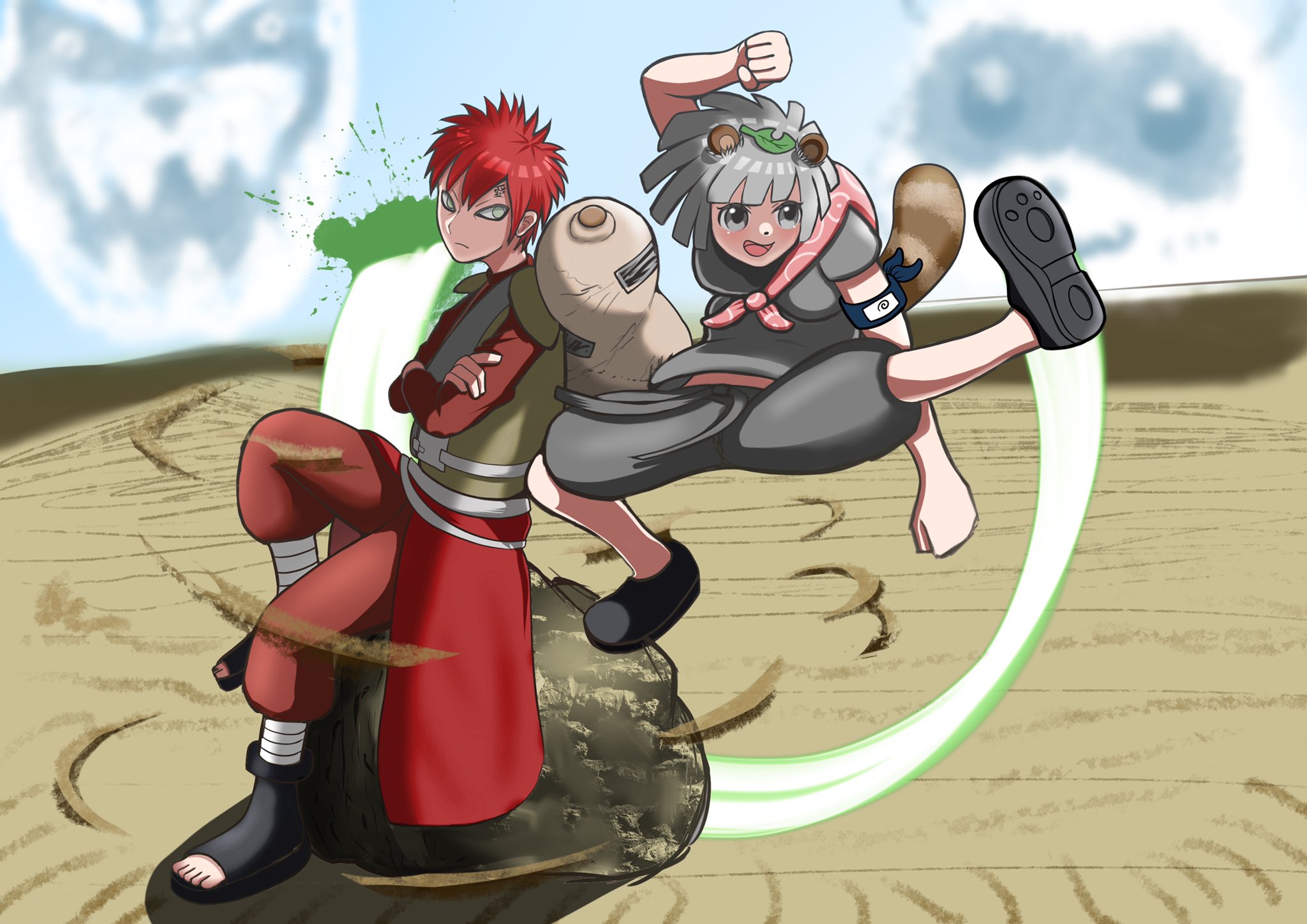 狸の人柱力の忍者と 狸の獣人の忍者 #ぽこあーと