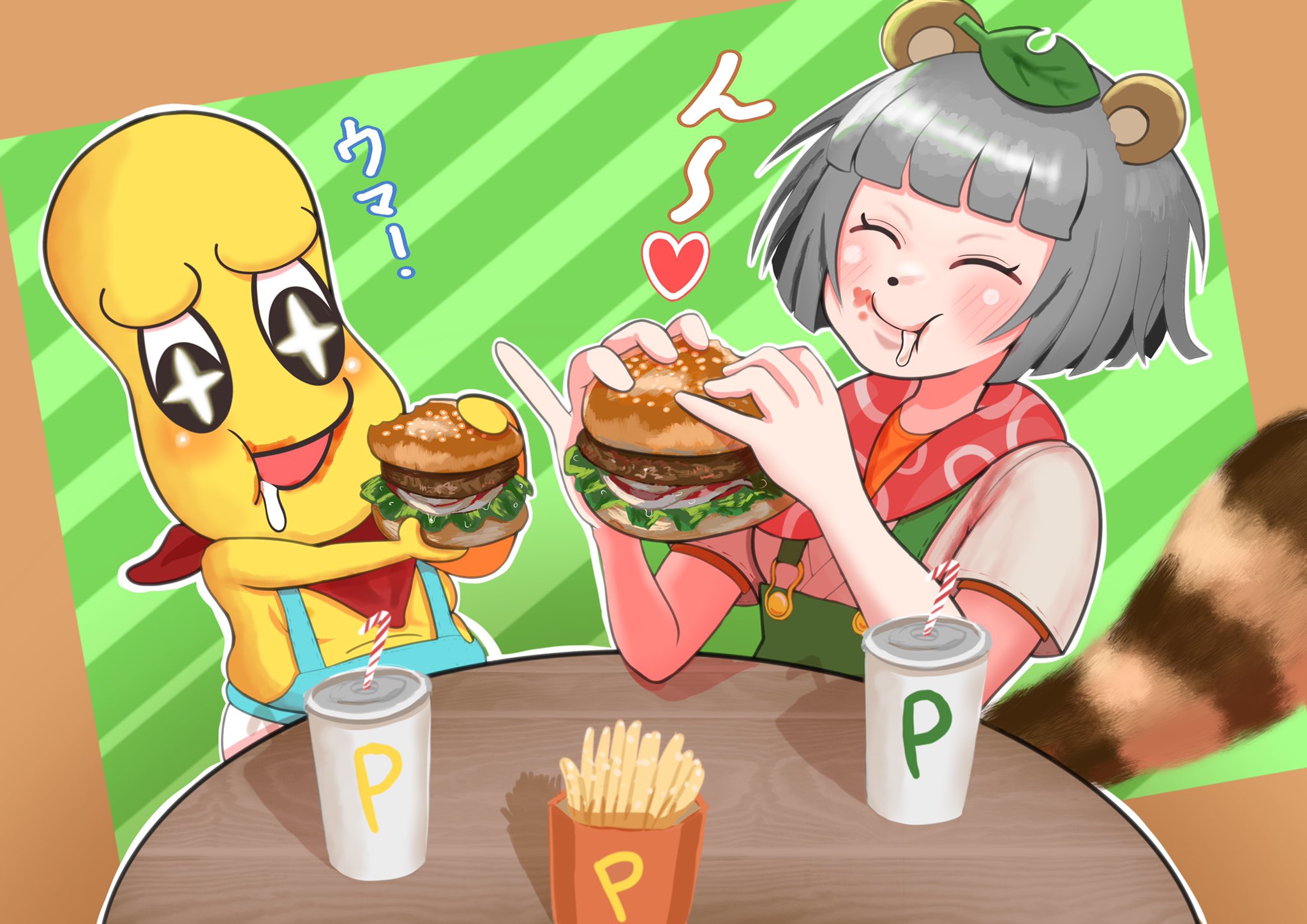 #ぽこあーと #オシャレになりたいピーナッツくん ハンバーガー食べさせたかった🥜🍃