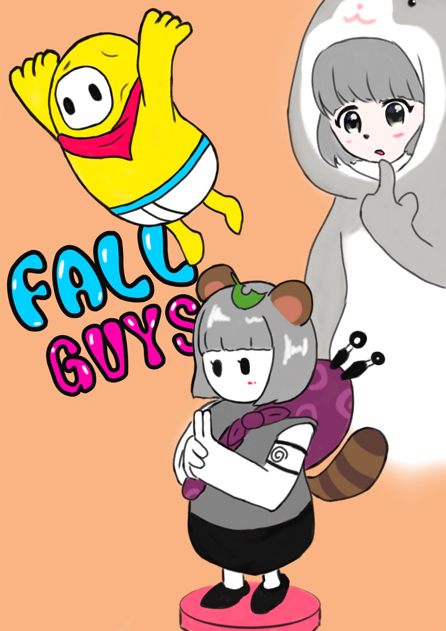 ぽこピーさんがFALL GUYSの大会に出場するという事で描いてみました! 頑張ってください!!✨ ぽこなあい楽しみにしてます😊 #ぽこあーと #FallAIs