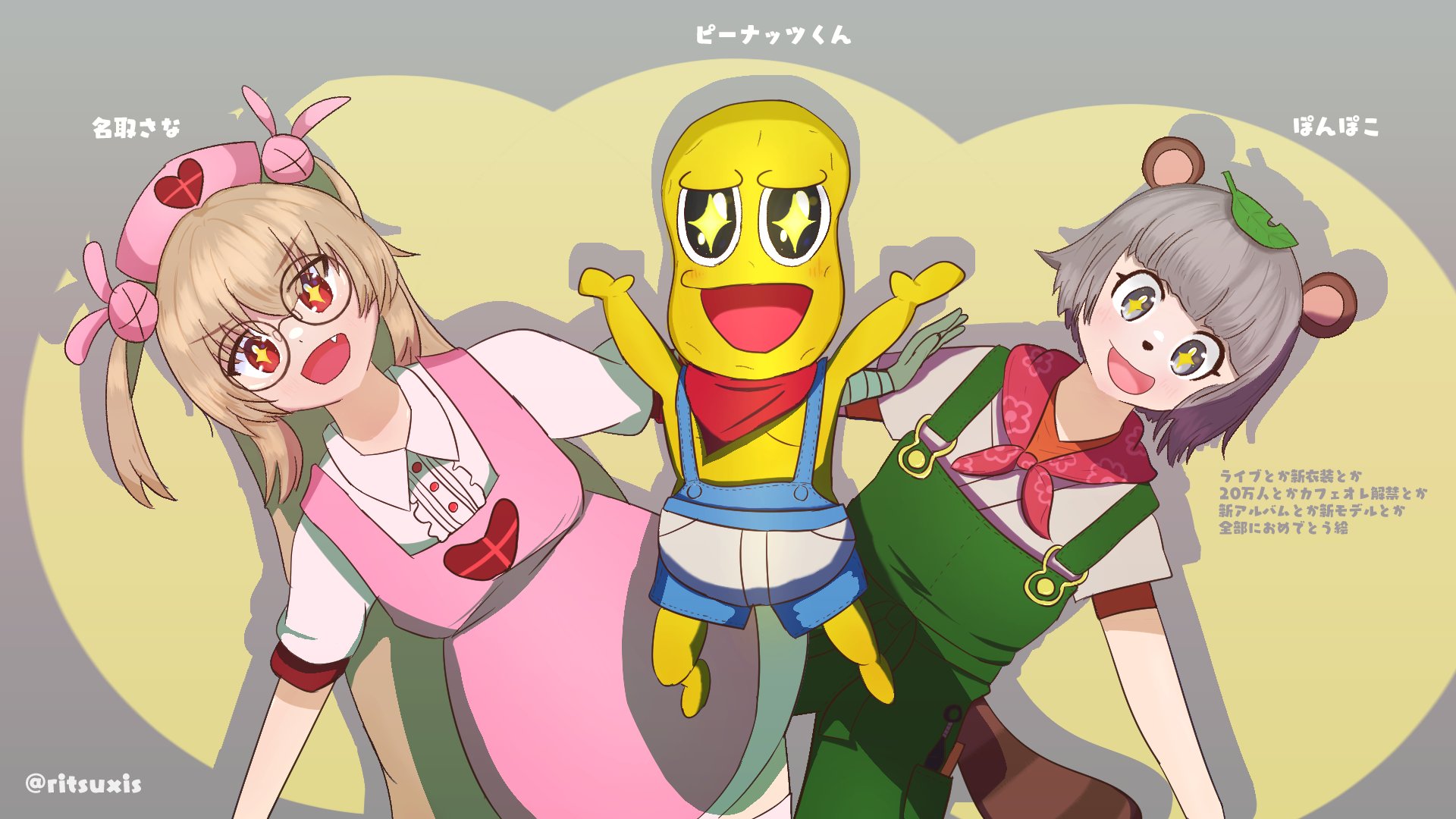 今更だけど6月から7月にあった、ライブとか20万人とか新衣装(メガネ)とかの全てにおめでとう絵 #ヌォンタート #オシャレになりたいピーナッツくん #ぽこあーと