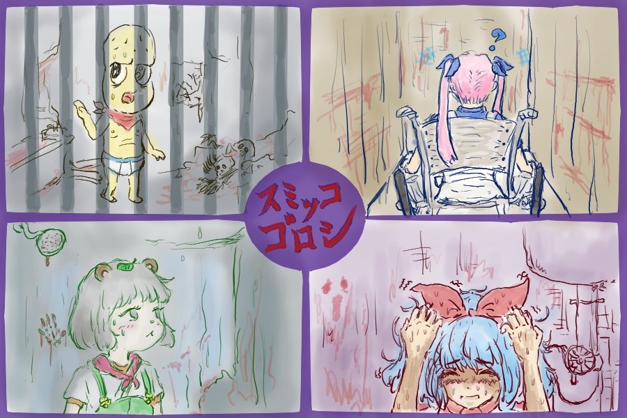 #おめシス #ぽこあーと #オシャレになりたいピーナッツくん #ZAUNTED #スミッコゴロシ #親戚コラボ おそろシステムプログラム スタート前の 黄色と青と緑と赤