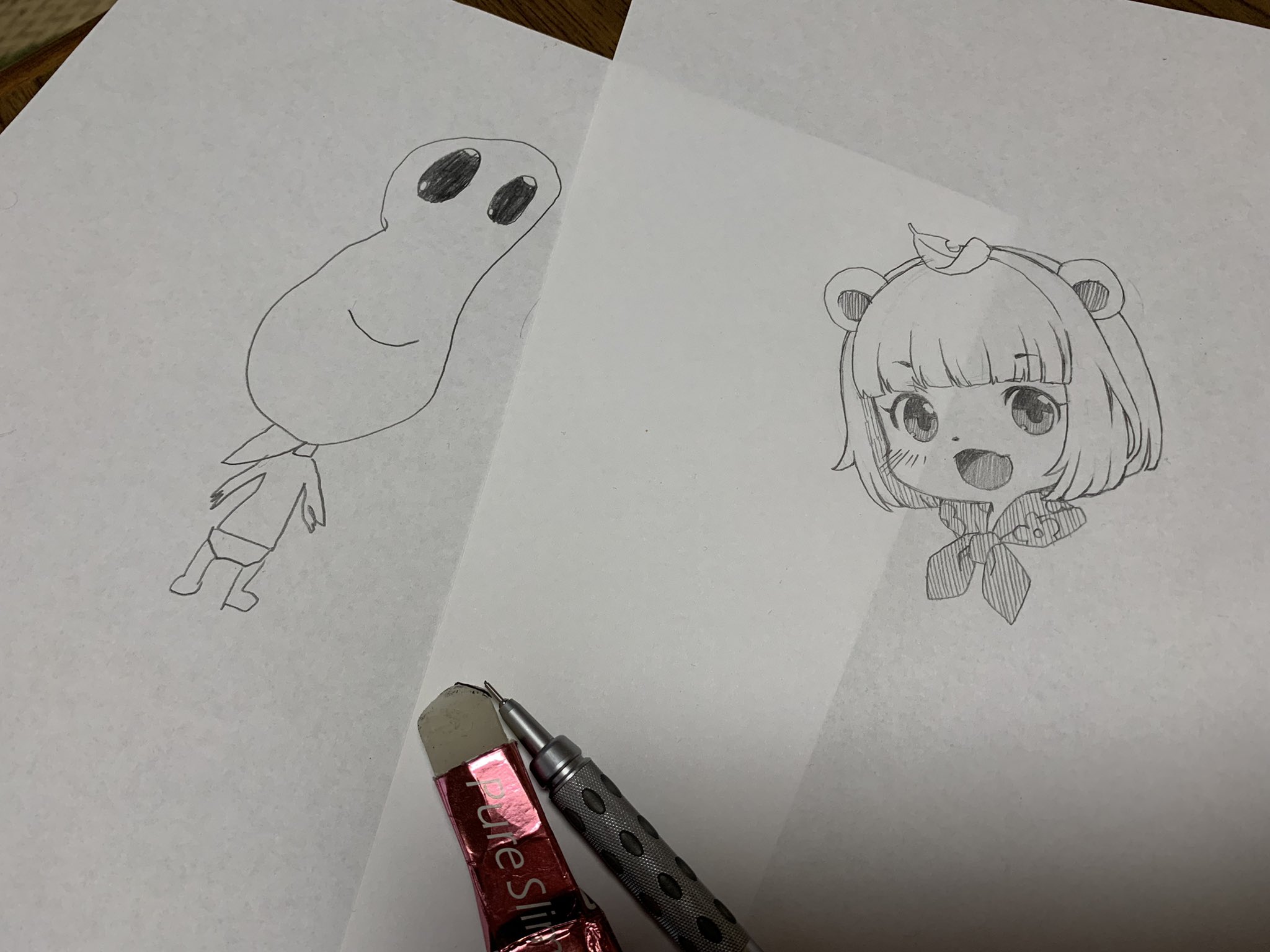 推しのぽこちゃんの初ファンアートです!ぽこちゃん描いてたら娘がピーナッツくん描いてたwwいつも元気もらってるぽこぴー!!本当に大好きです😭💕 #ぽこあーと