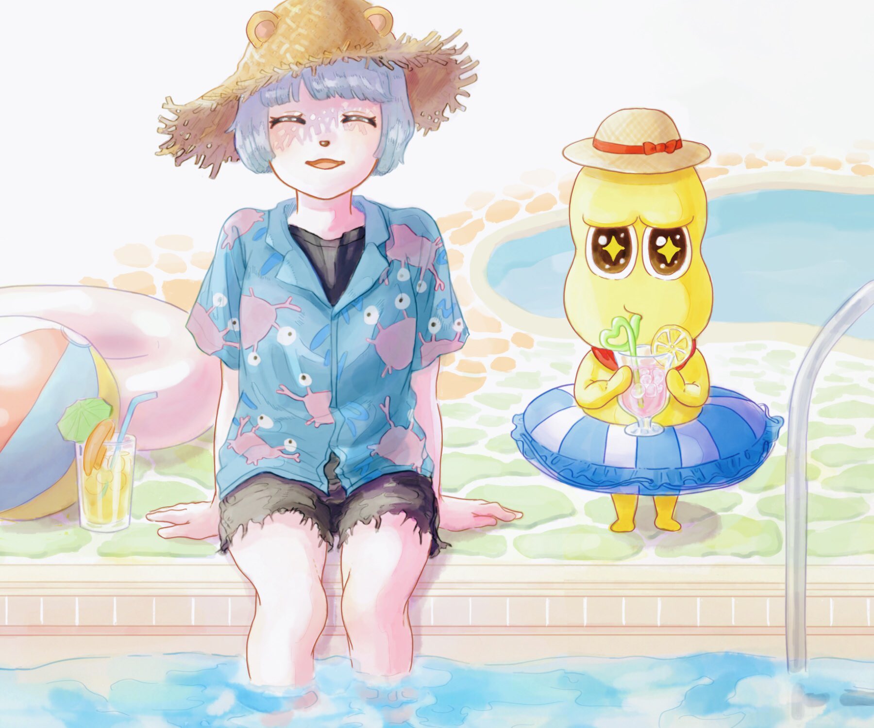 夏も終わりだけどプール!✨ #ぽこあーと #オシャレになりたいピーナッツくん