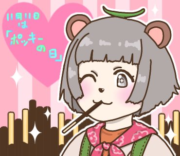 ぽんぽこさんにポッキー食べさせたかった! #ポッキーの日 #ぽこあーと #イラスト