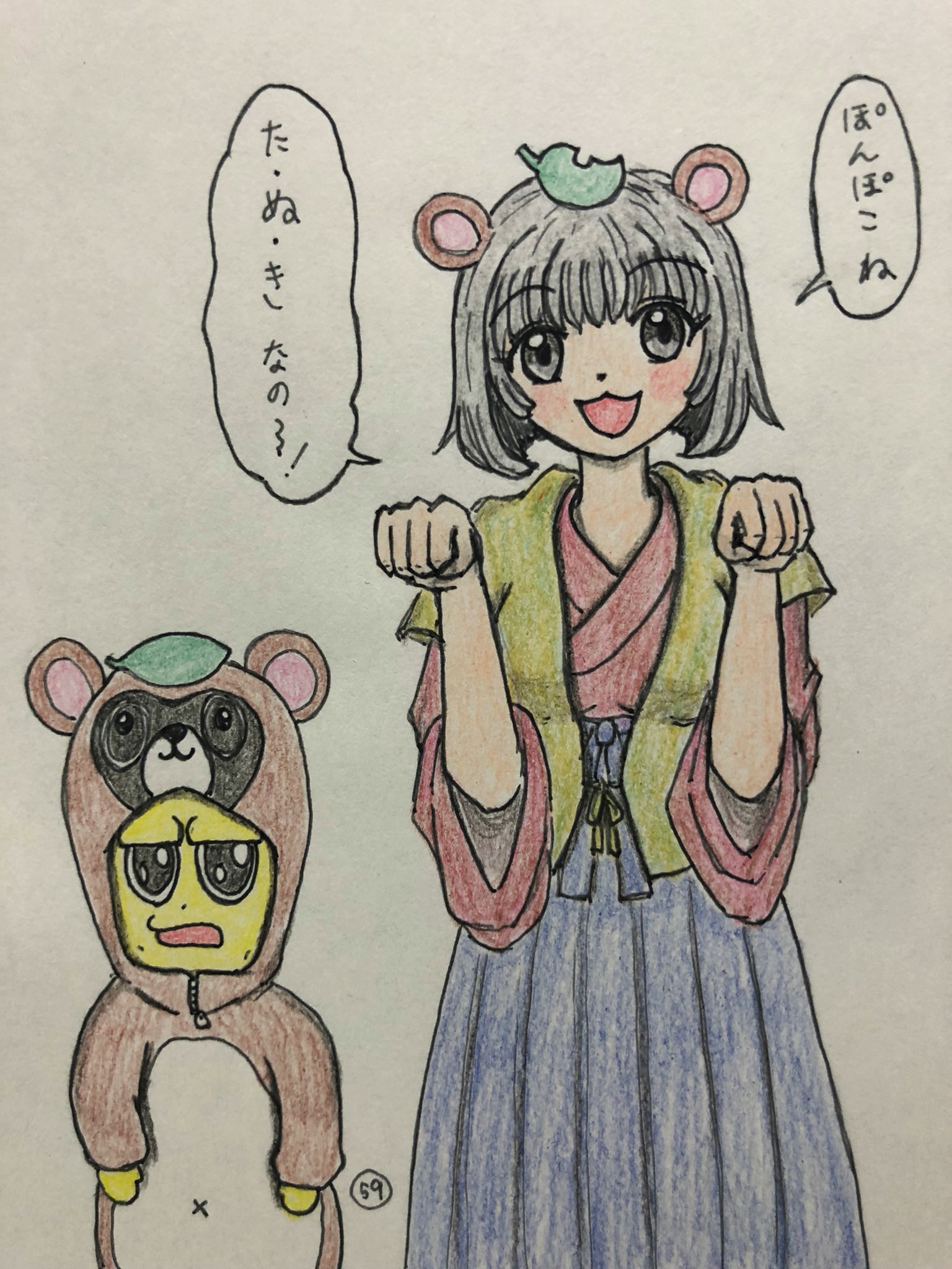 【59枚目②】100枚目に描き慣れるおめシスとぽこピー #ぽこあーと #オシャレになりたいピーナッツくん たぬき兄妹