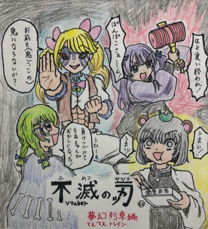 【60枚目②】100枚目に描き慣れるおめシスとぽこピー #ぽこあーと #ぴくちあ #もちひよあーと #やひろかいたぞ #てぇてぇトレイン 吾峠呼世晴先生度々すみません