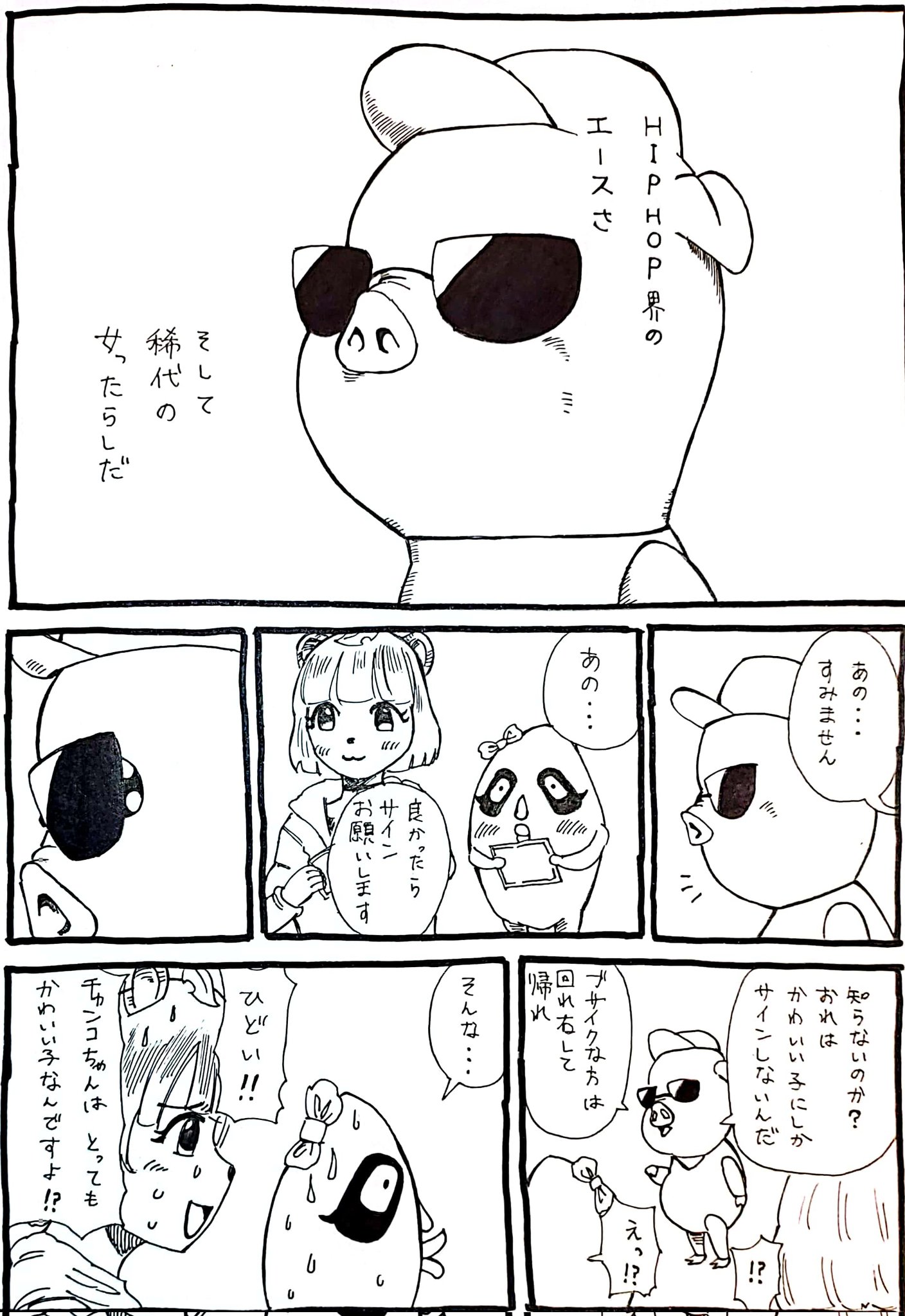 レオタードブタにサインをもらおうとしたガチ恋ぽんぽことチャンコ漫画 #オシャレになりたいピーナッツくん #ぽこあーと