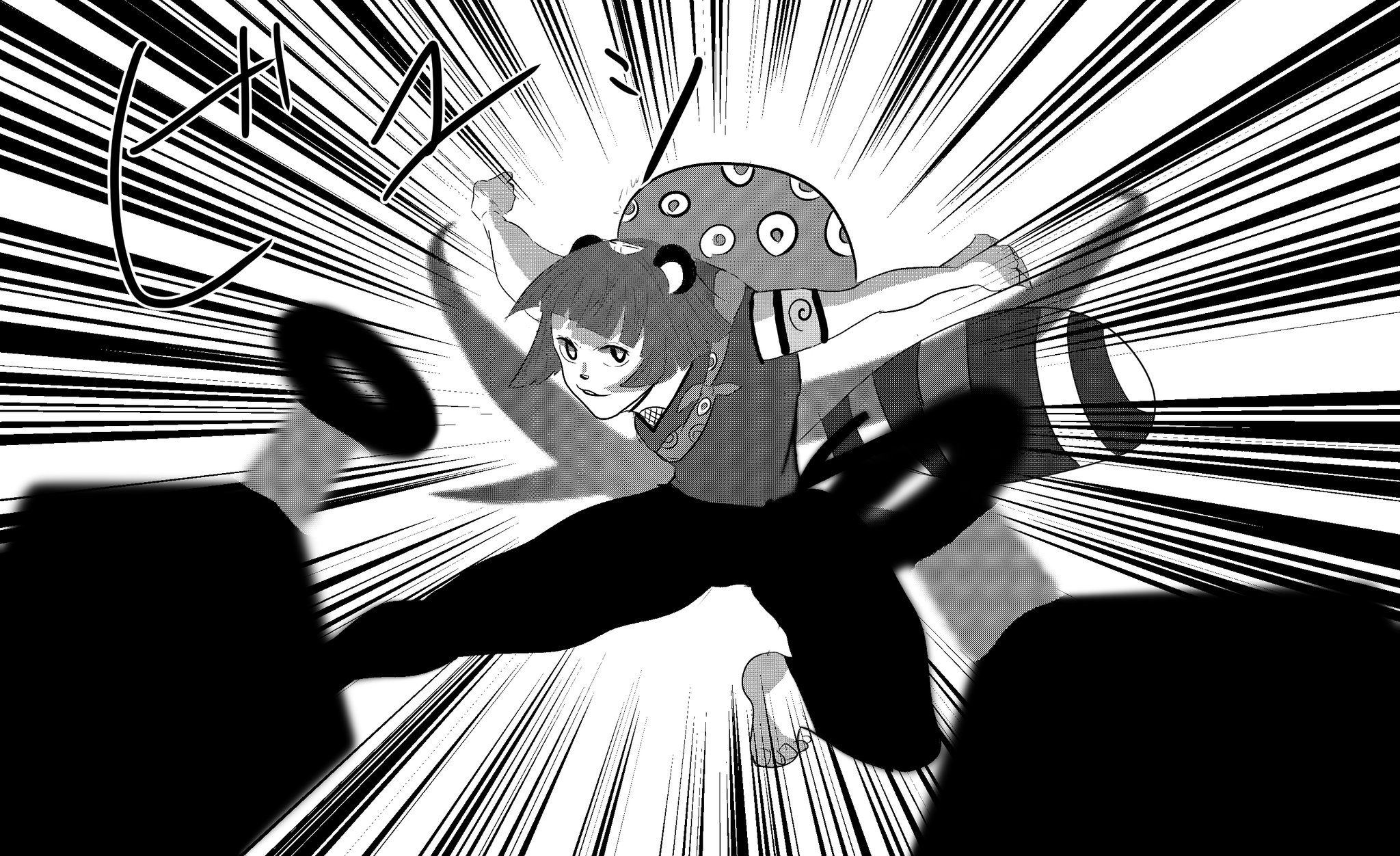 #ぽこあーと クナイで攻撃するぽんぽこ!