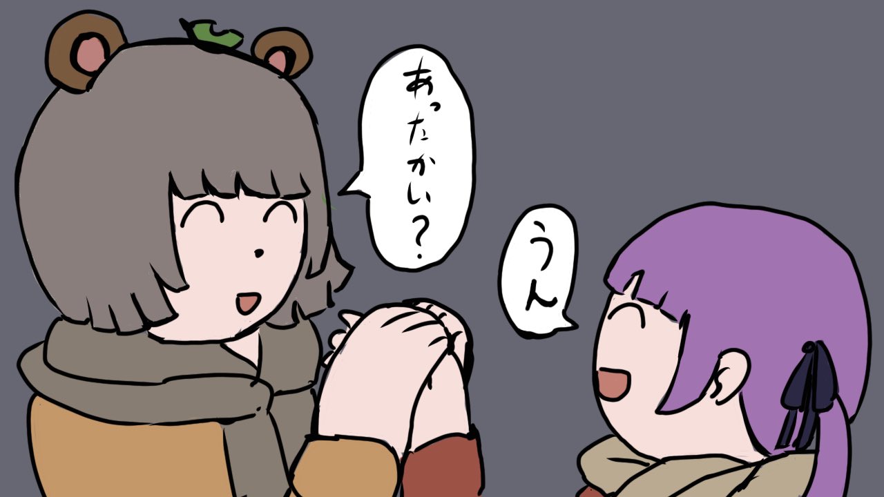 #ぽこあーと #もちひよあーと もちひよこさんの手を温めるぽんぽこさんの絵