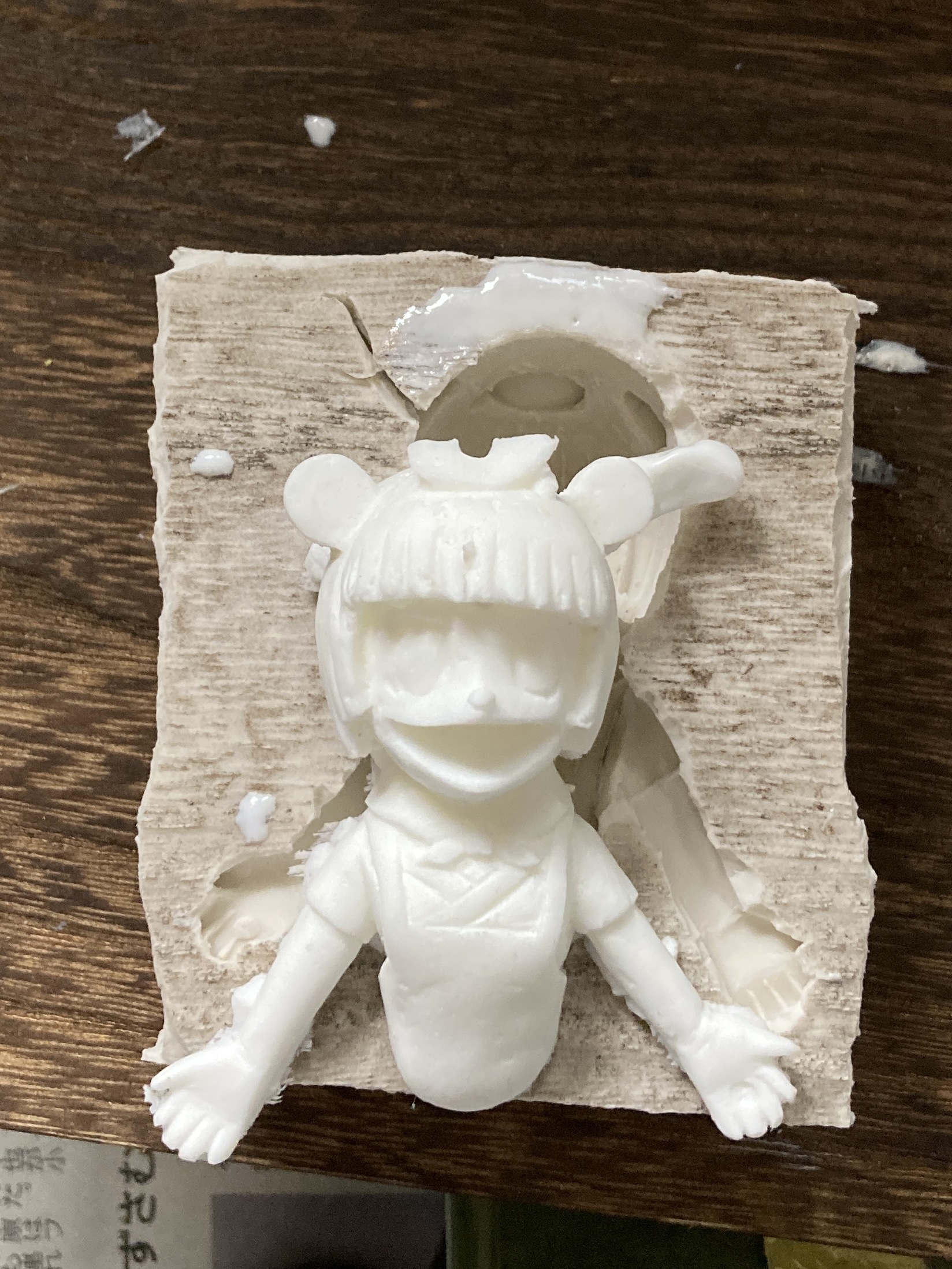 ぽんぽこさんを再度型取りしてレジンを注型しました。 これをもう一皮剥いて仕上げます。 残りのレジンで抜けるだけ抜いた。 #ぽこあーと #楽造形