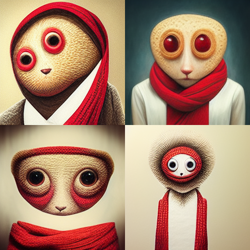 とりあえずAIにピーナッツくん再現に注力してもらおうとした。赤いスカーフと白いパンツを身につけて、大きな目を持つピーナッツを描いてもらったのだが、ピーナッツを理解していない説が!