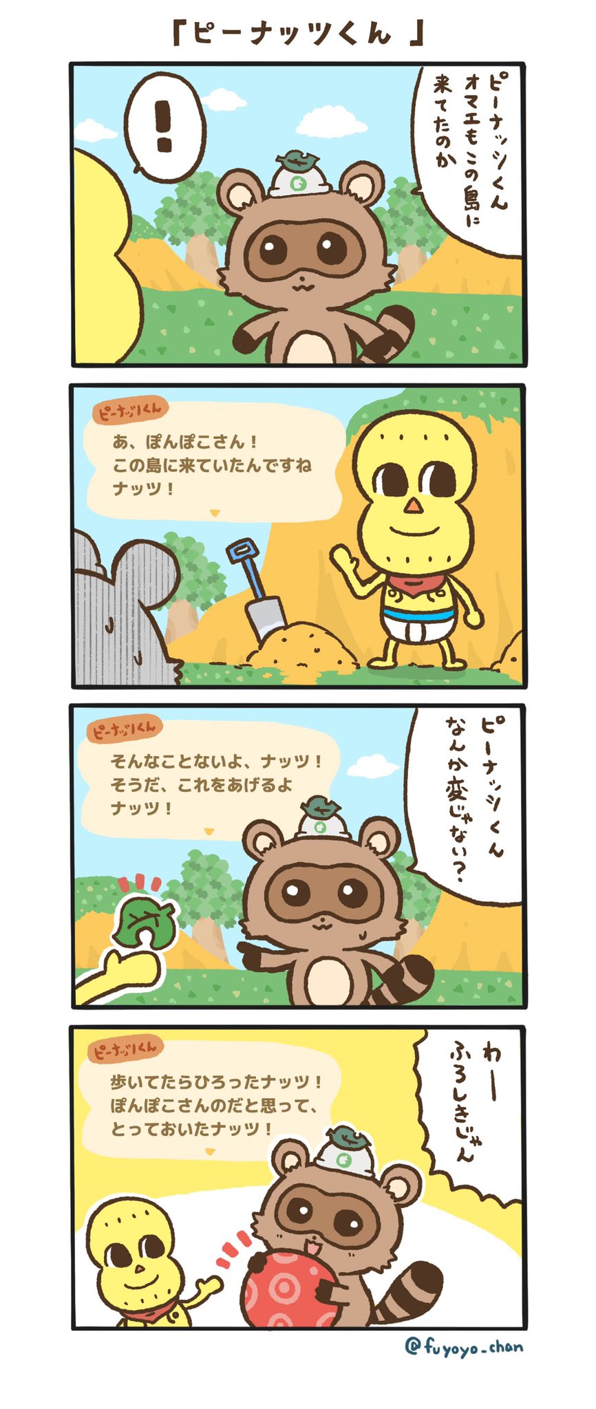 『あつまれどうぶつの森』の発売直前に描いた、ぽこピー4コマ漫画を再投稿いたします🏖 (バラバラで読みづらかったので1話〜4話までまとめました🍃🥜) #ぽこあーと #オシャレになりたいピーナッツくん