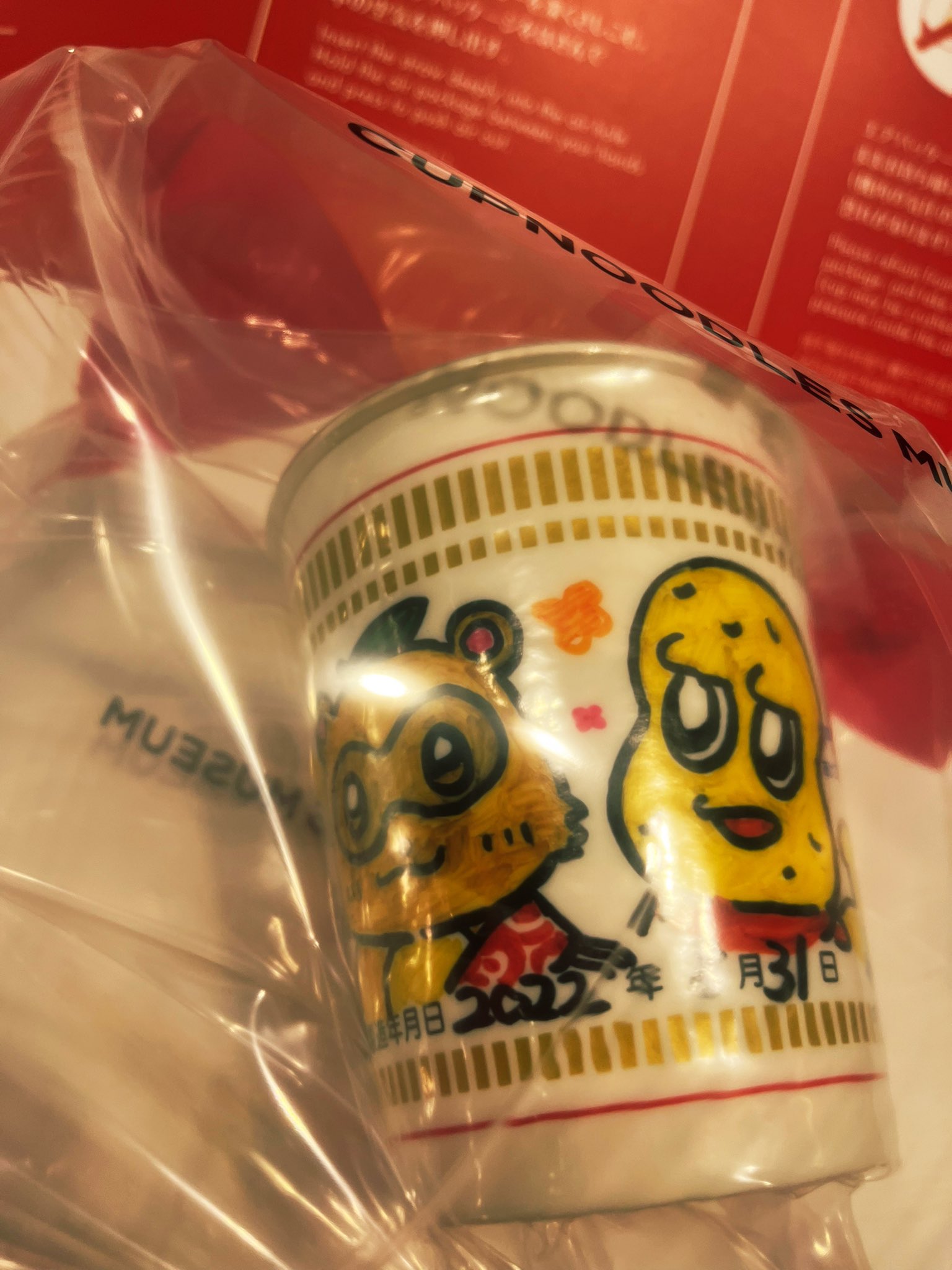 カップヌードルミュージアムに友達と行っていてぽこピーを描いた…🎶 シーフードにキムチ、エビ、ひよこちゃんなると、ハイプロテイン謎肉をトッピングした🫰 #ぽこあーと #オシャレになりたいピーナッツくん