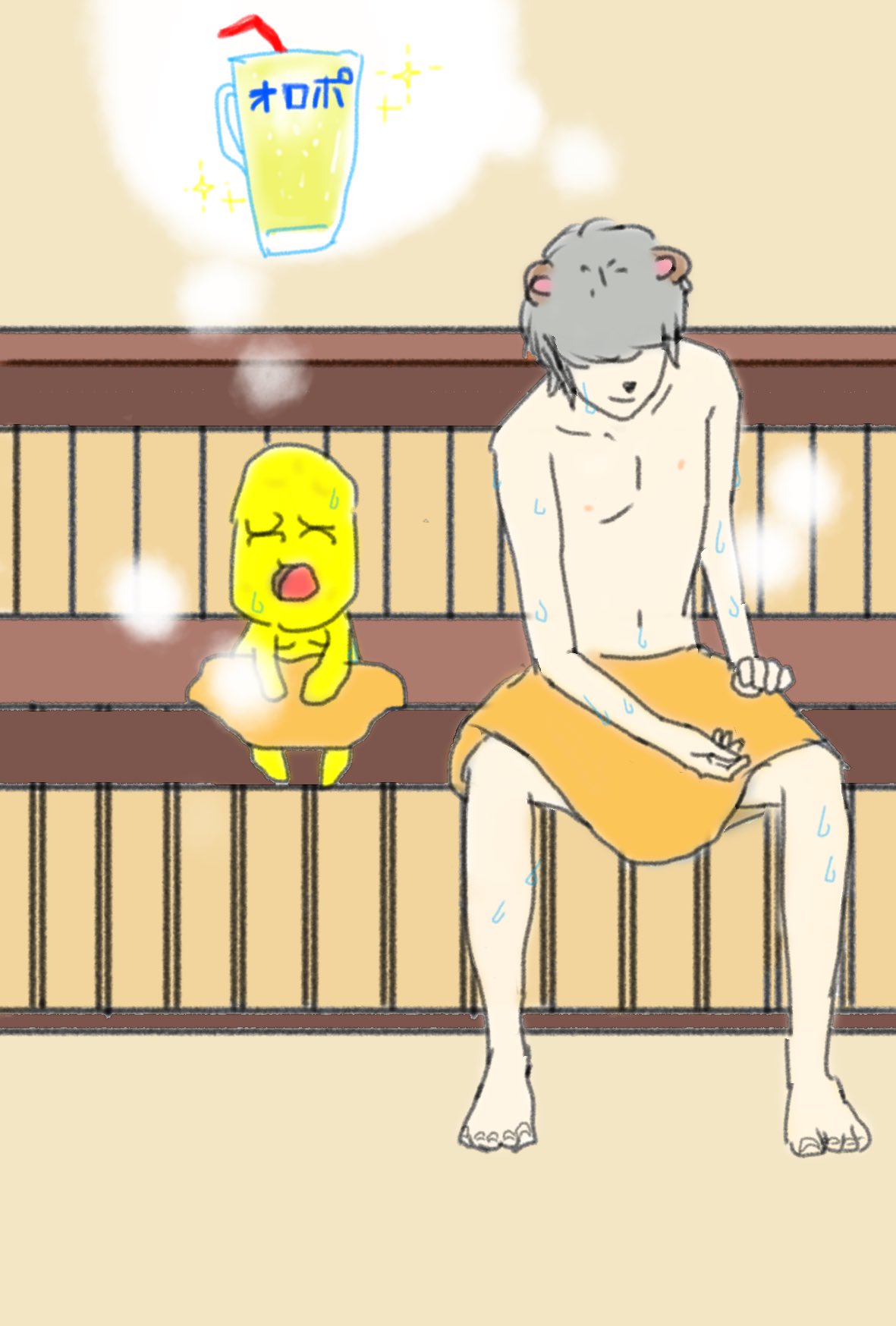 #兄ぽこ #ピーナッツくん #ぽこあーと サウナ後のオロポを楽しみにいつもより粘るピーナッツくん&想像して口角上がっちゃう兄ぽこ