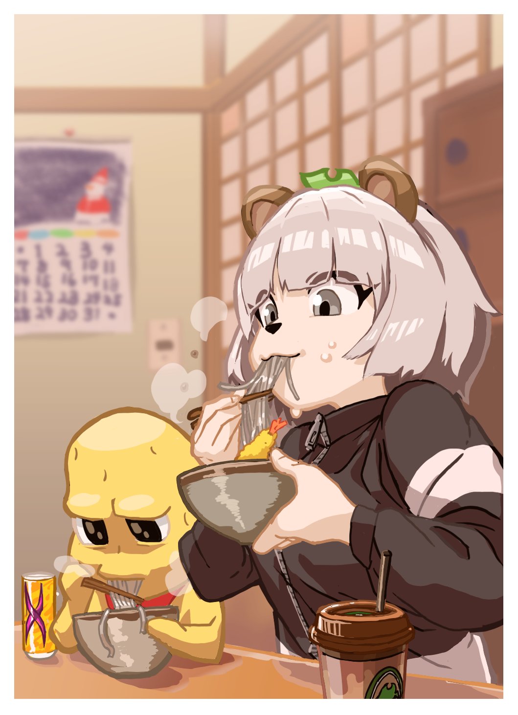 早いけど年末絵です たぬきそばがよかった? #ぽこあーと