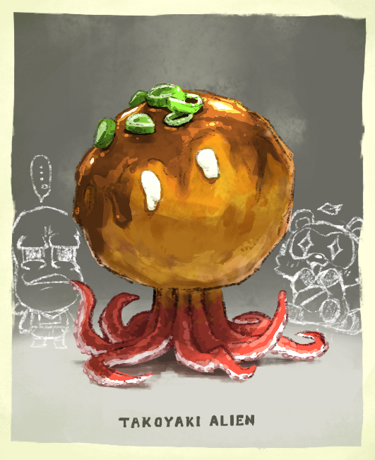 ぽんぽこさんによって生み出された蛸焼きエイリアンの再掲、余裕があったら新規絵も描きたい🦝🥜 #ぽこピーランドあーと #ぽこあーと https://www.youtube.com/watch?v=4XRYAqQ5478&list=PLfh7JI1tDPvP9L_yw7C2T6OR7Cw_0C6r9&index=14