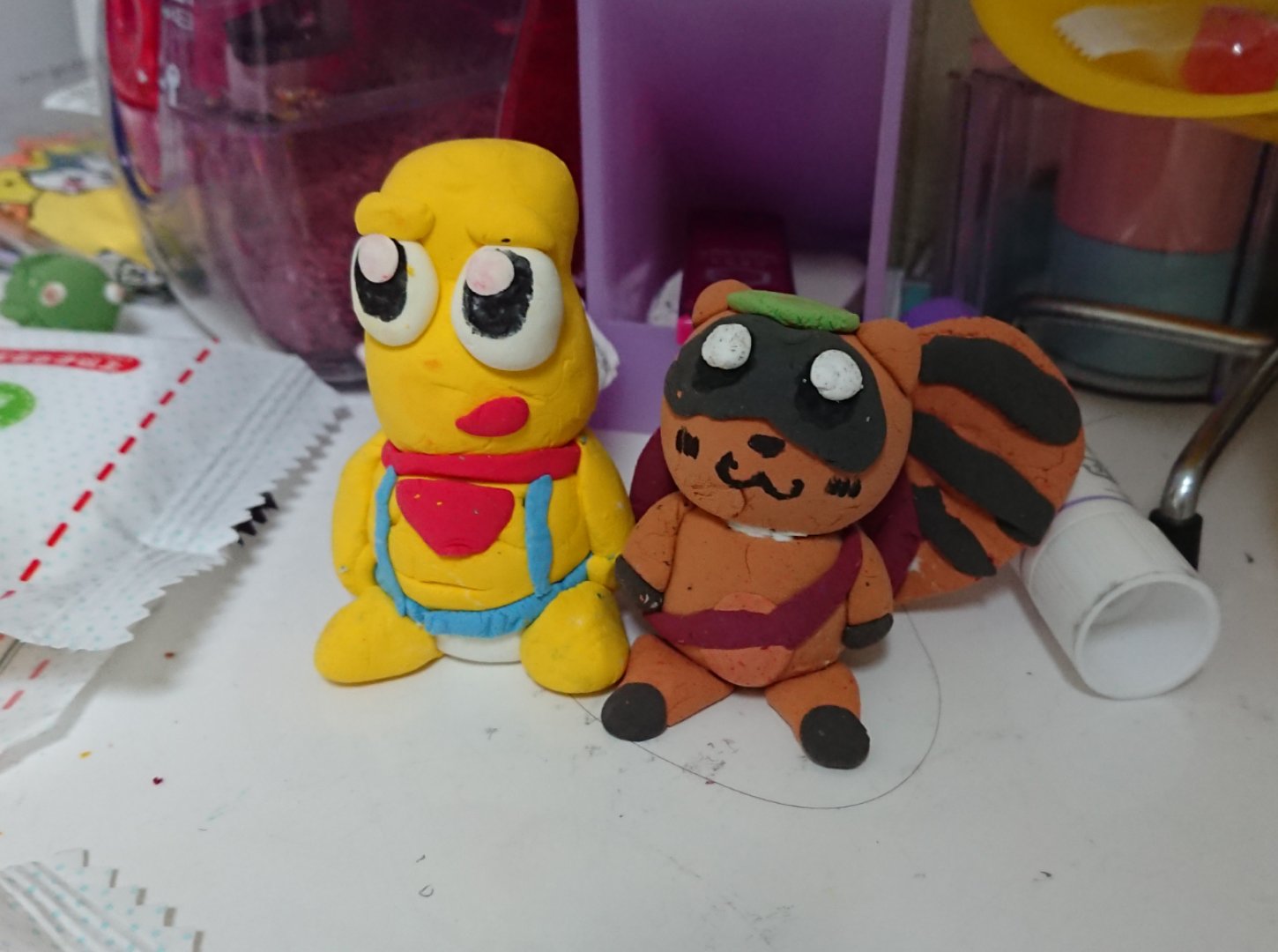小学生娘の作品。のちにピーナッツくんは顔が乾燥の際に割れてしまった🥺 #ぽこあーと