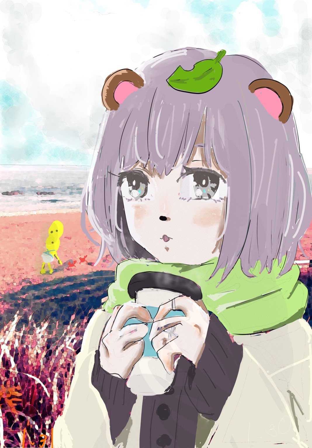 寒い中飲むカフェラテはうまい☕️🐄 40万人おめでとうう㊗️🎊㊗️ #ぽこあーと