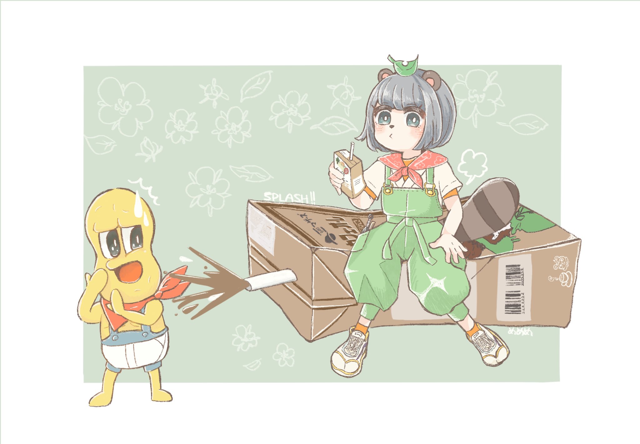 🍃🥜カフェオレスプラッシュ☕️ #ぽんぽこかしこい #ぽこあーと #オシャレになりたいピーナッツくん #イラスト