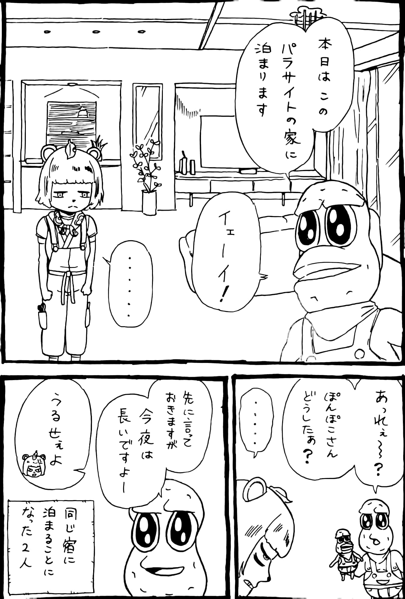 同じ宿に泊まったピーナッツくんとぽんぽこさん漫画 #オシャレになりたいピーナッツくん #ぽこあーと