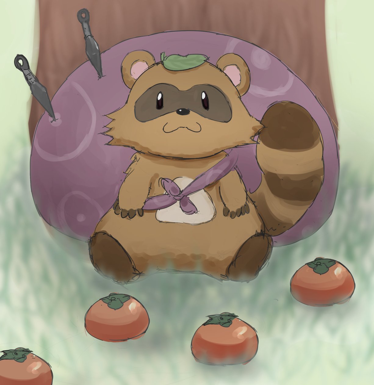 落ちてた柿を里の民に売るかしこいタヌキ #ぽこあーと