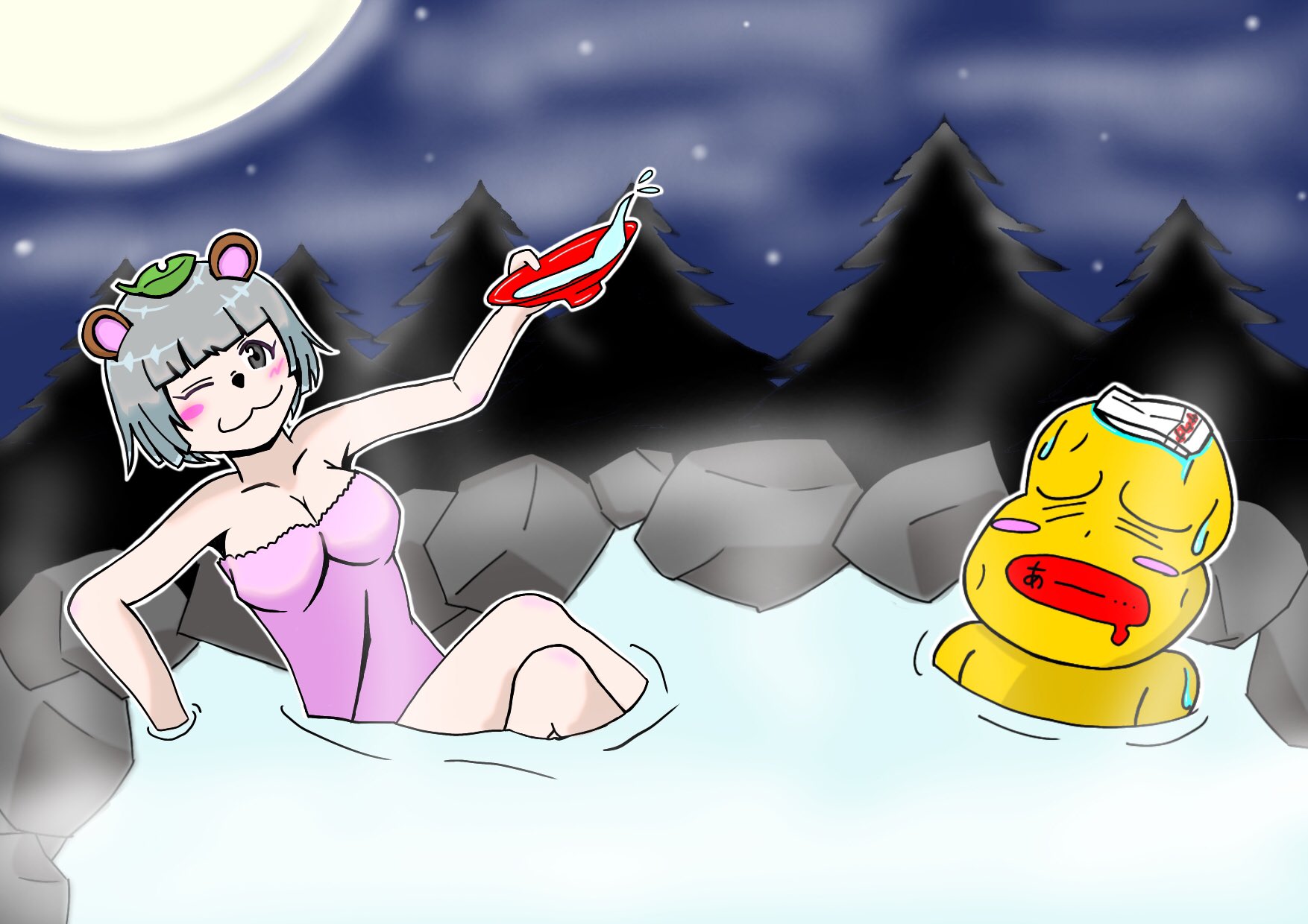 九州の温泉良いとこ♨️ またおいで🦝🥜 #ぽこあーと #オシャレになりたいピーナッツくん