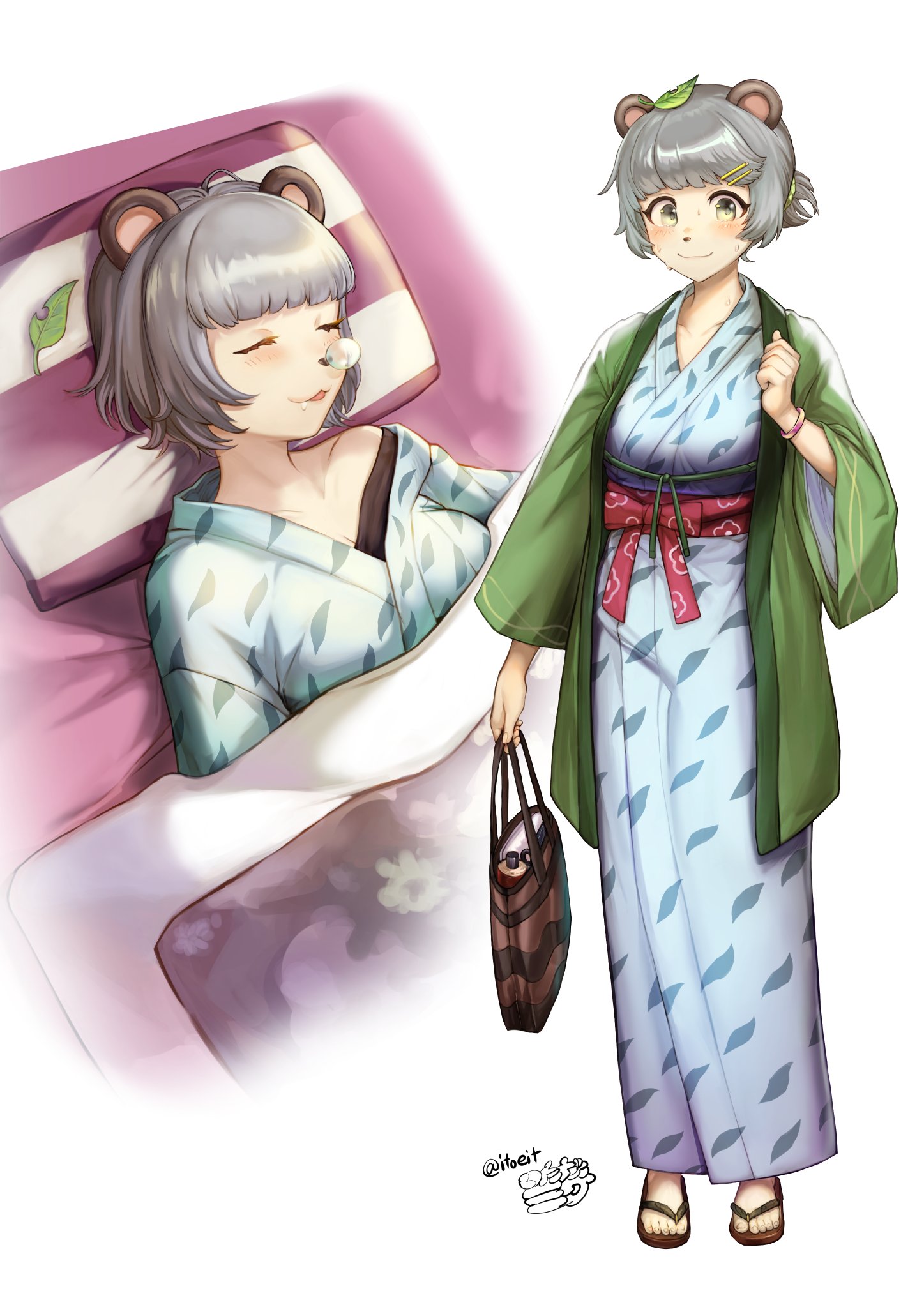 旅動画で普段着のまま寝てるから何か着てほしいな~♨️ #ぽんぽこかしこい #ぽこあーと