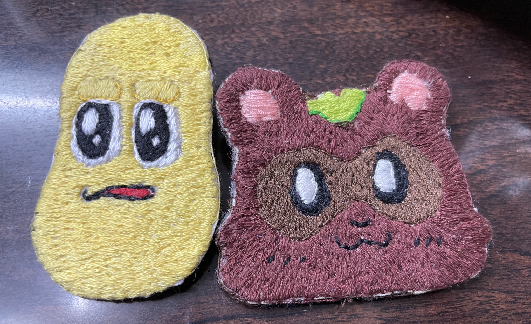 #ぽこあーと #オシャレになりたいピーナッツくん 母がぽこピー展で買ったクッキーの刺繍をしてくれました!! これでクッキー食べても手元に残る!