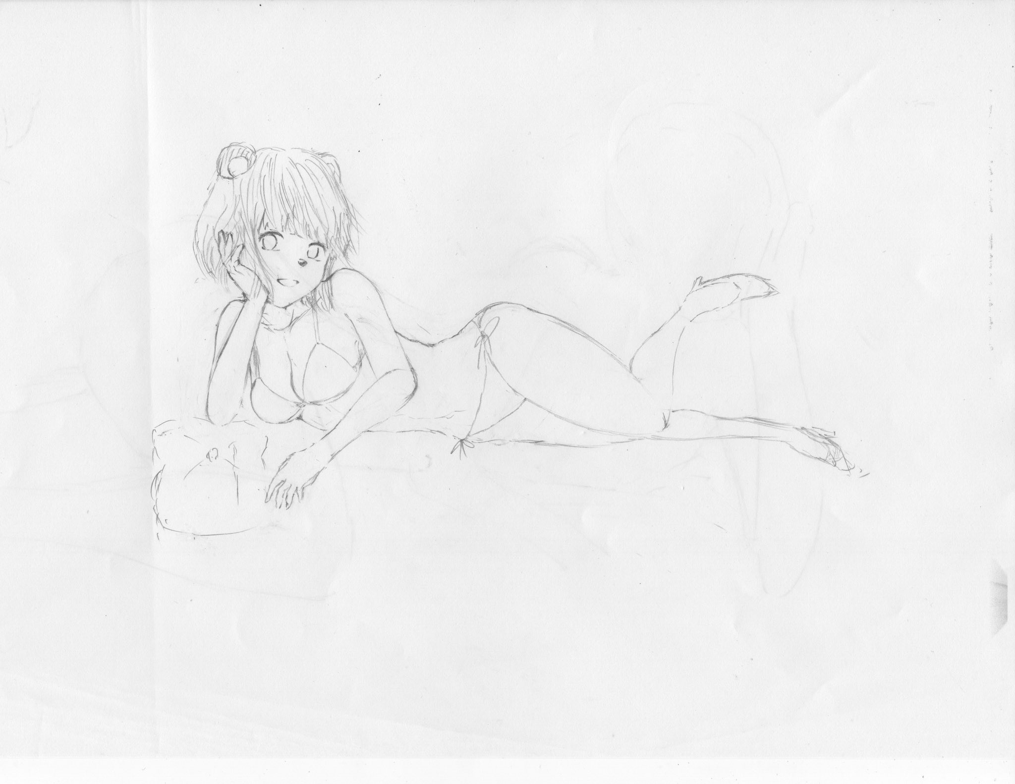 セクシーぽんぽこの下書きはできた 太ももは太いほどいいという親の教えに従った 余裕のある表情を意識して描いてみたけど大人な感じになったんじゃない? てかセクシーぽんぽこって水着なんすかね?とりあえず水着にしとけばいいかなと思って描いてみたのだが #ぽこあーと #ぽんぽこセクシー