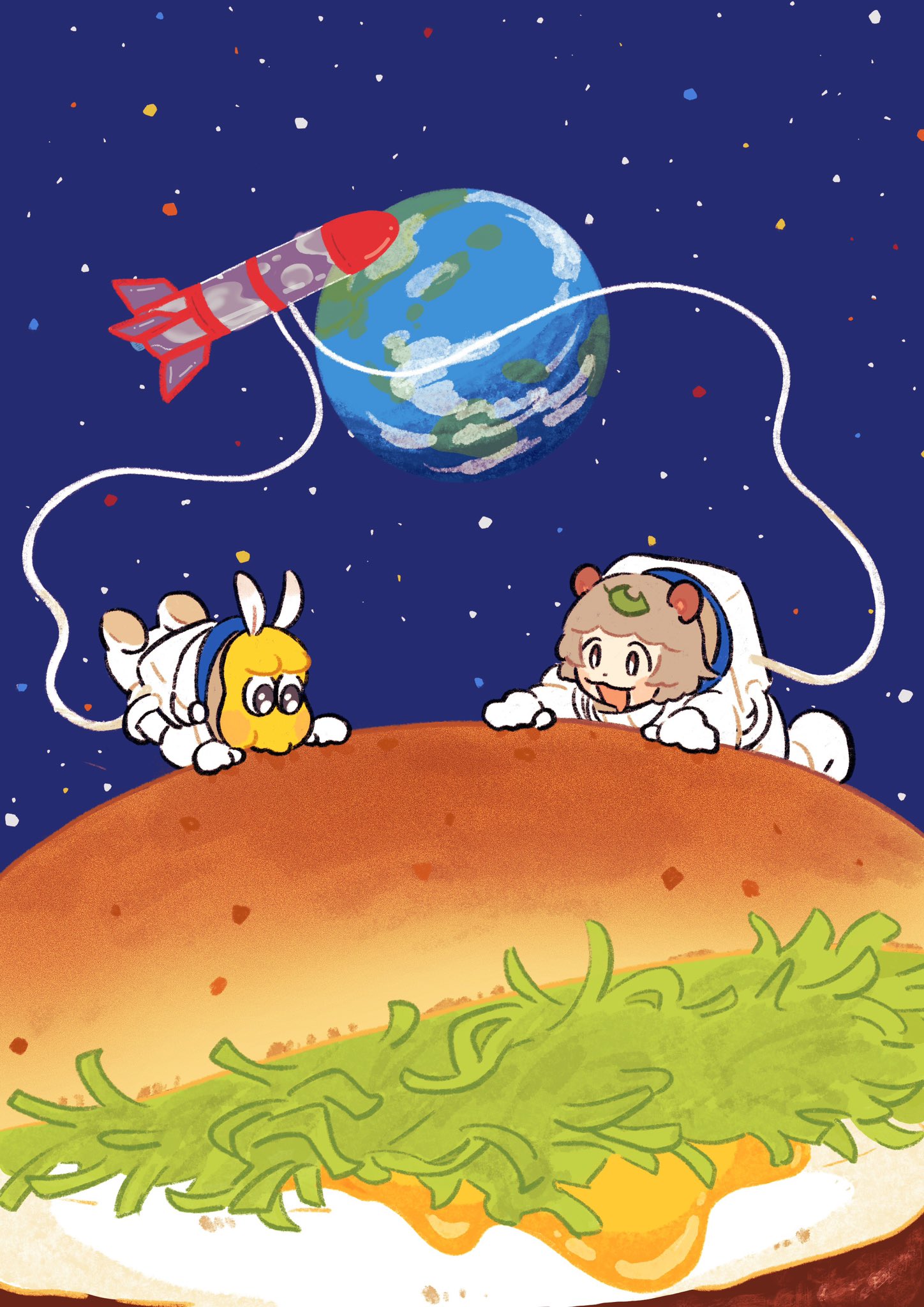 スペース・ツキミ・バーガー🪐🍔 #ぽこあーと #オシャレになりたいピーナッツくん