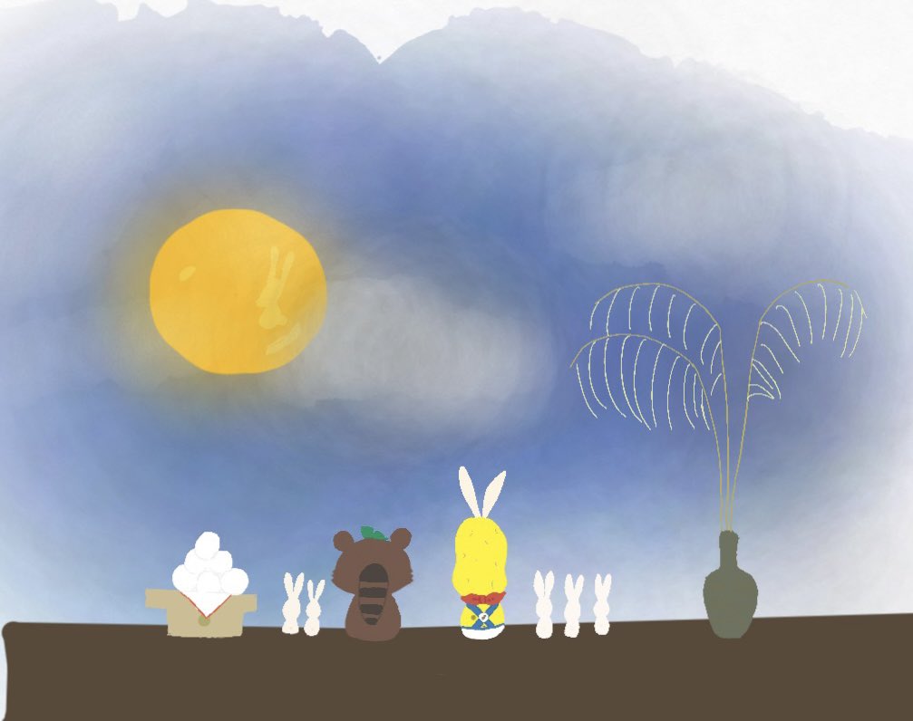 お月見 #ぽこあーと #オシャレになりたいピーナッツくん