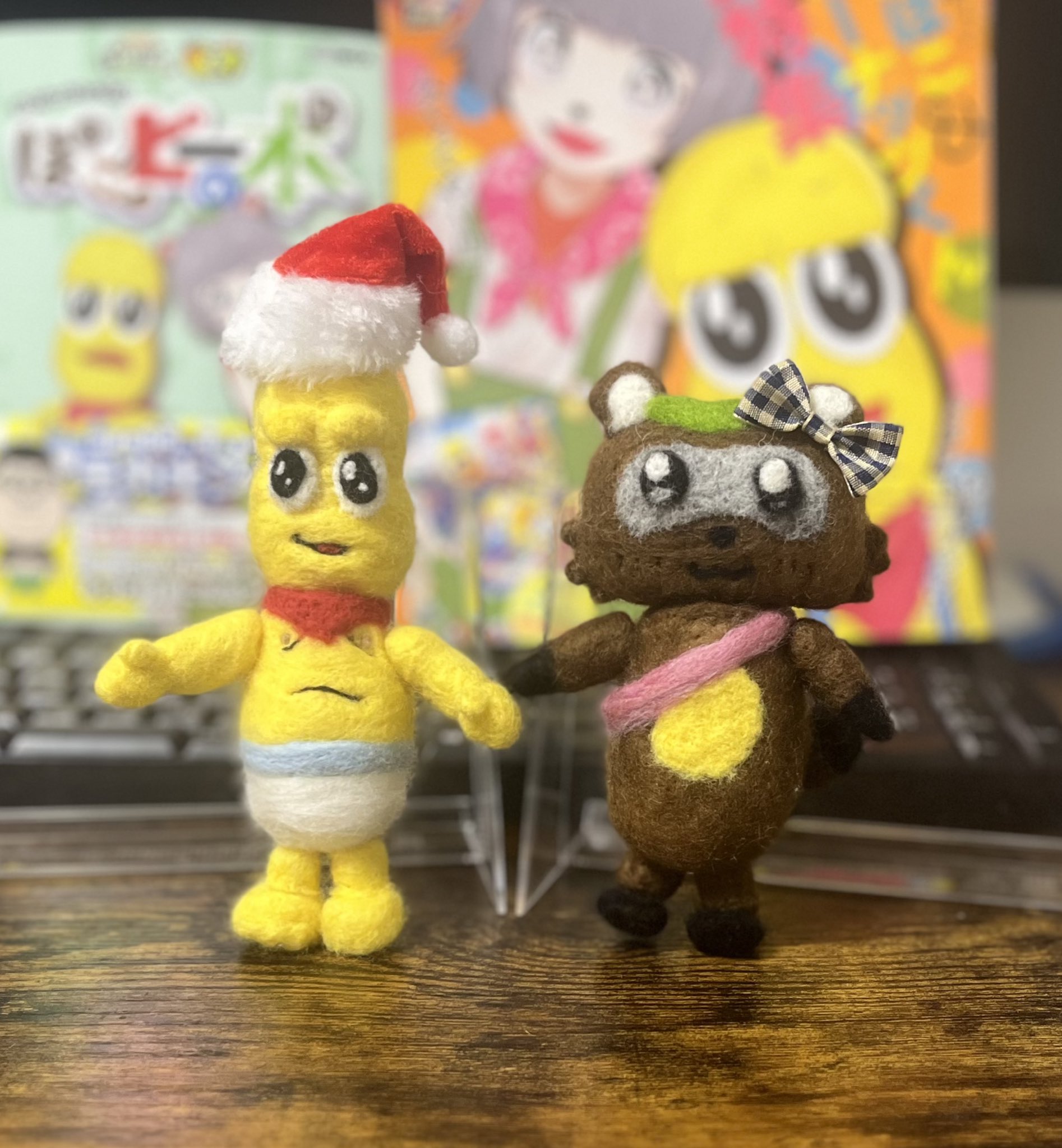 羊毛フェルトでぽこピーの2人を作ってみました! もうすぐクリスマス🎄🎄 #ぽこあーと #オシャレになりたいピーナッツくん #PokopeaAdventCalender2023