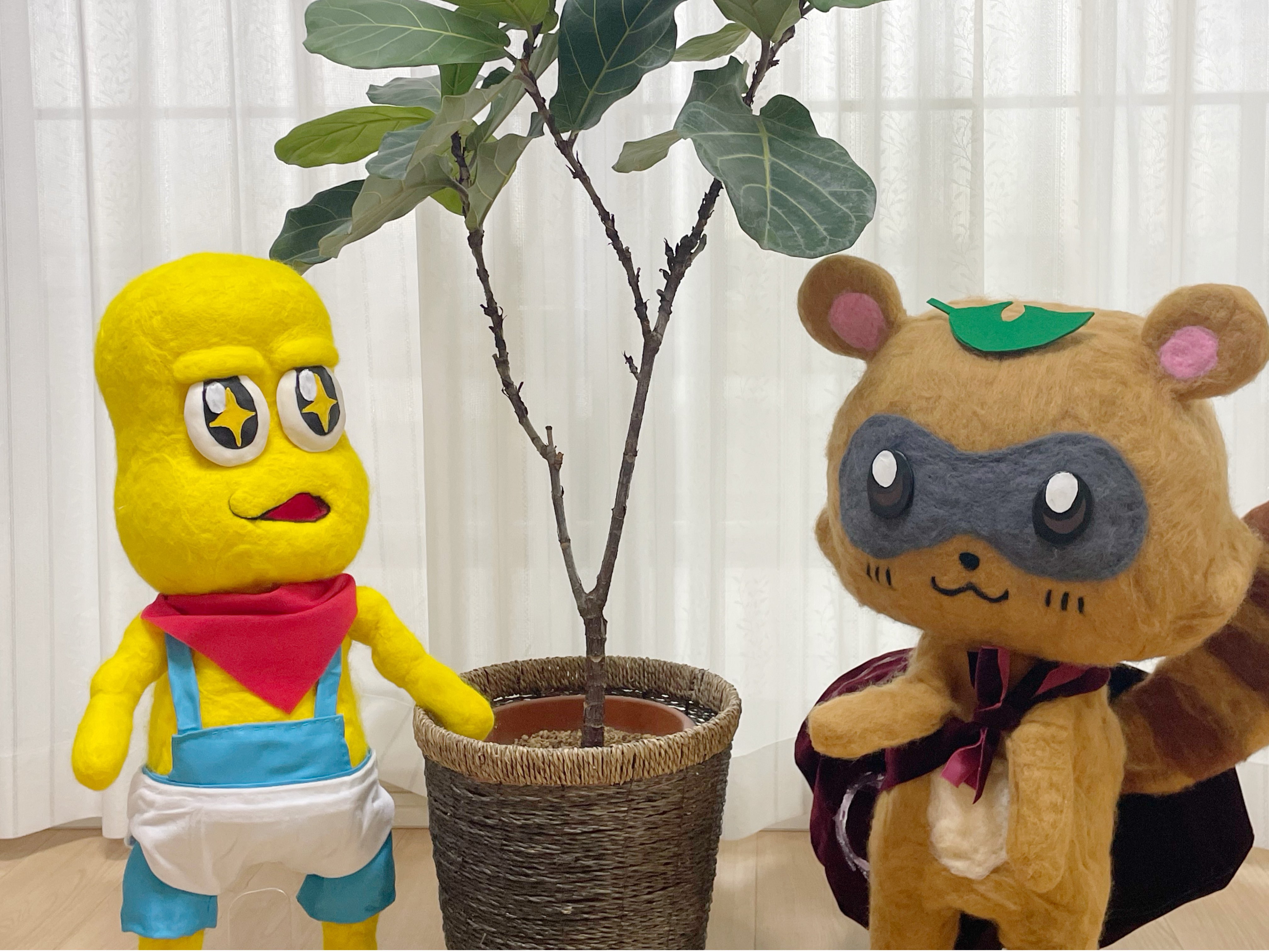 ぽんぽこさんとピーナッツくん!出来たよ✨ #オシャレになりたいピーナッツくん #甲賀流忍者ぽんぽこ #ぽんぽこかしこい #ぽこあーと #羊毛フェルト