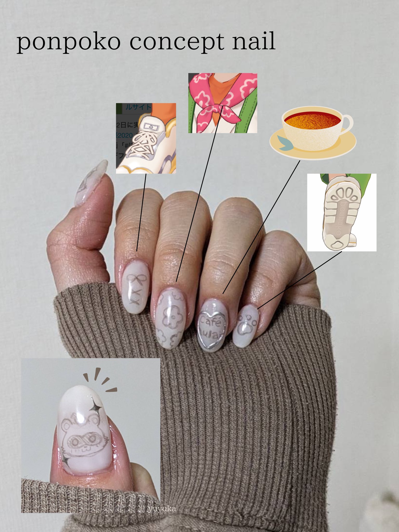 ぽんぽこ概念ネイル スイパラコラボに行くので概念ネイルしてみました🥰 セルフネイラーなので優しい目でみてください、、 #ぽこあーと #ぽんぽこかしこい #推しネイル