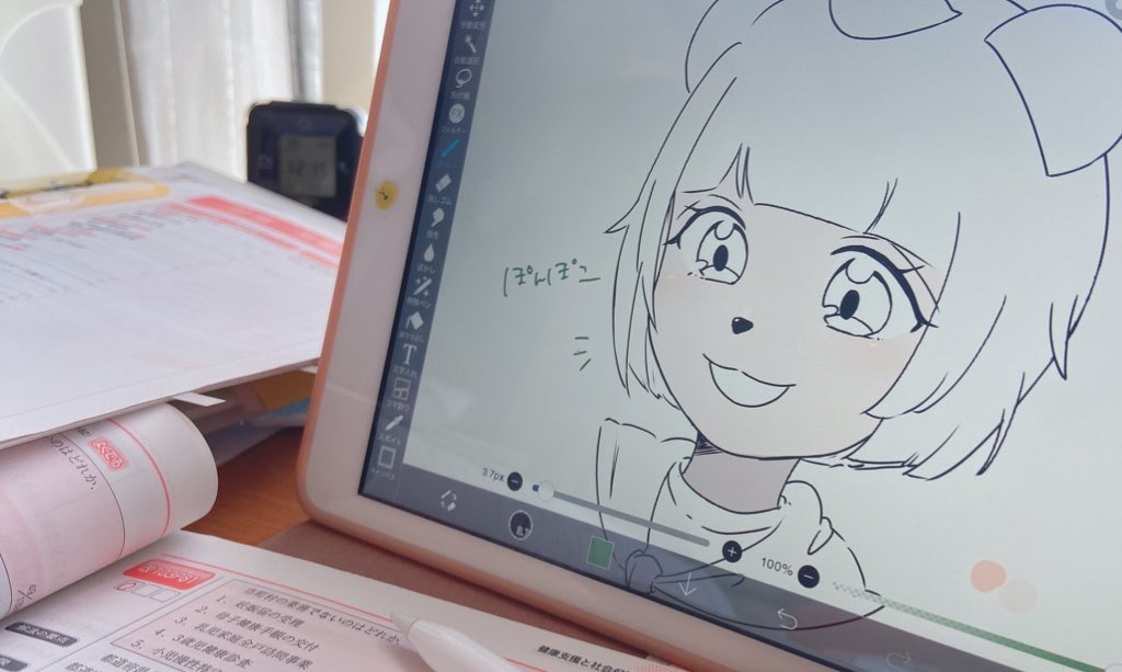 勉強よりお絵描きだよねぇ..... #ぽこあーと
