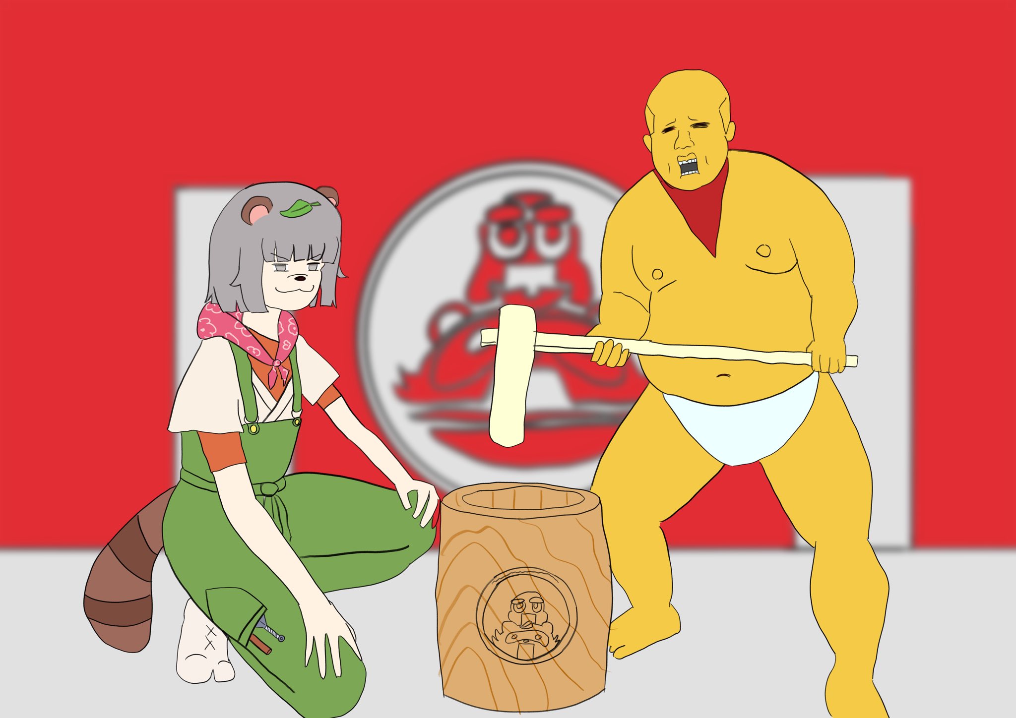 餅つきをするクールなぽこピー。 #ぽこあーと #オシャレになりたいピーナッツくん