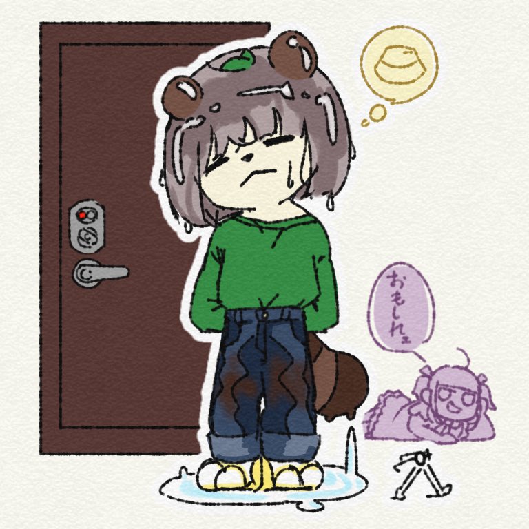 バケハ失くし髪ぬるぬるズボンびちゃびちゃココアパウダーまみれどたんば狸 withおもしれェもちひよこ outside 歩きメガネ #ぽこあーと