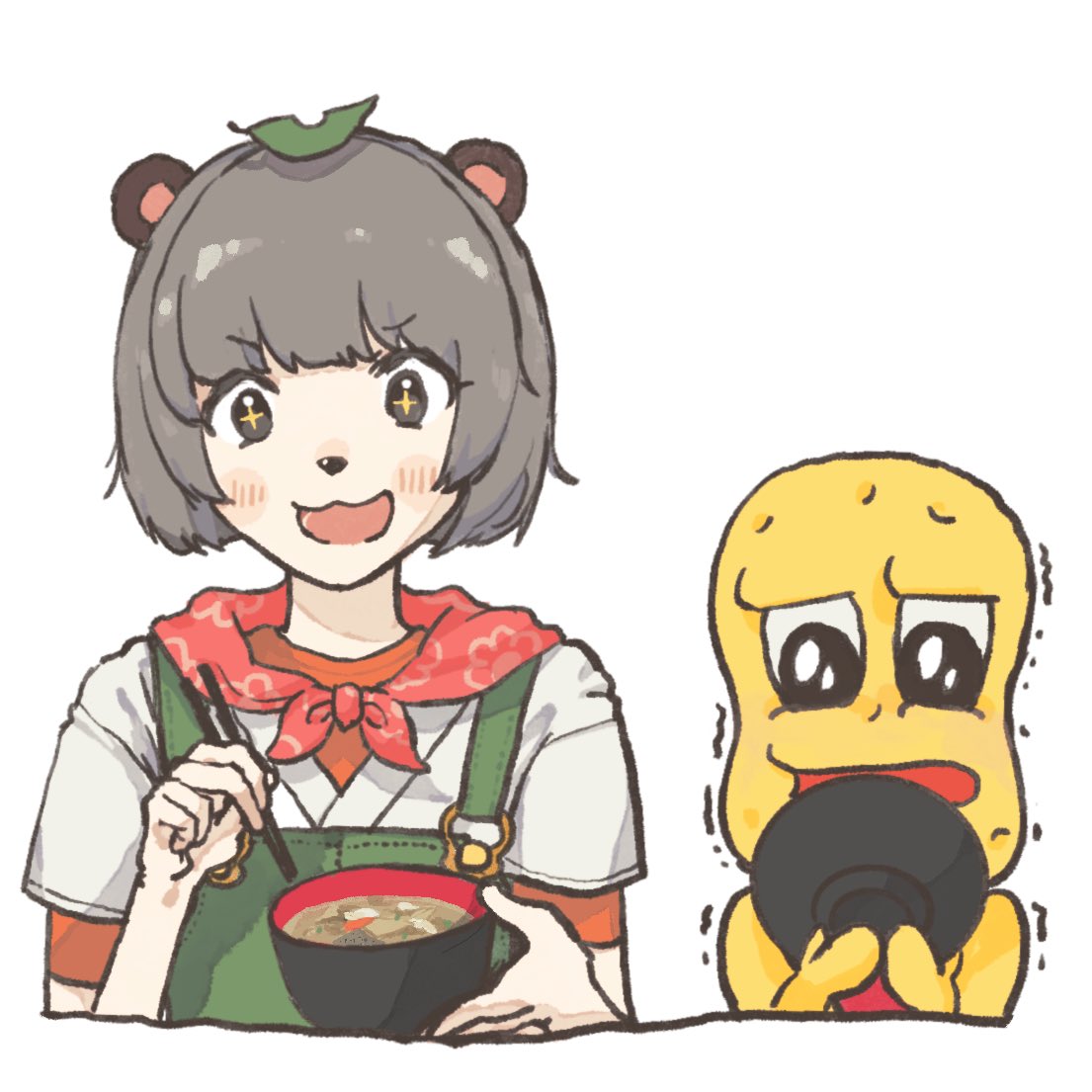 なか卯ほっともっとおめでとう🎊🎊🎊🎊 ふたりが食べてるの大好き #ぽこあーと #オシャレになりたいピーナッツくん