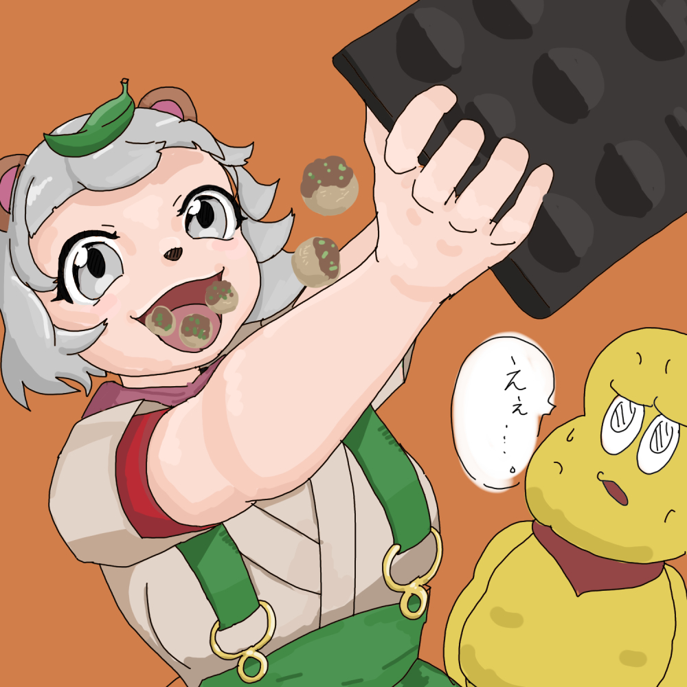 たこ焼き鉄板から一気食いするぽんぽこさんとドン引きするピーナッツくんです!!!! #ぽこあーと