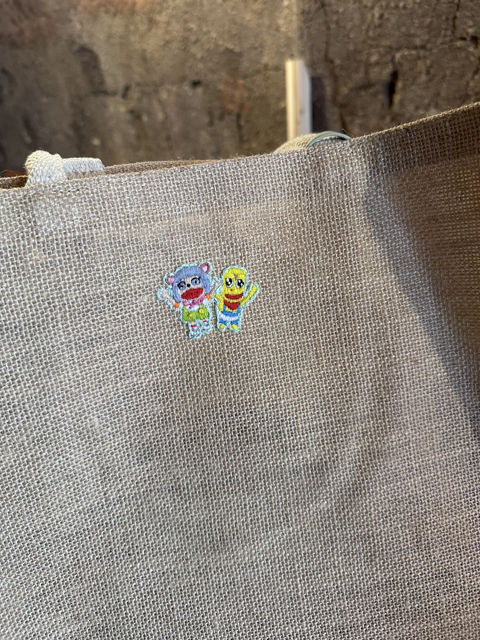 無印のカバンに刺繍してみました #ぽこぴー #甲賀流忍者ぽんぽこ #ぽこあーと