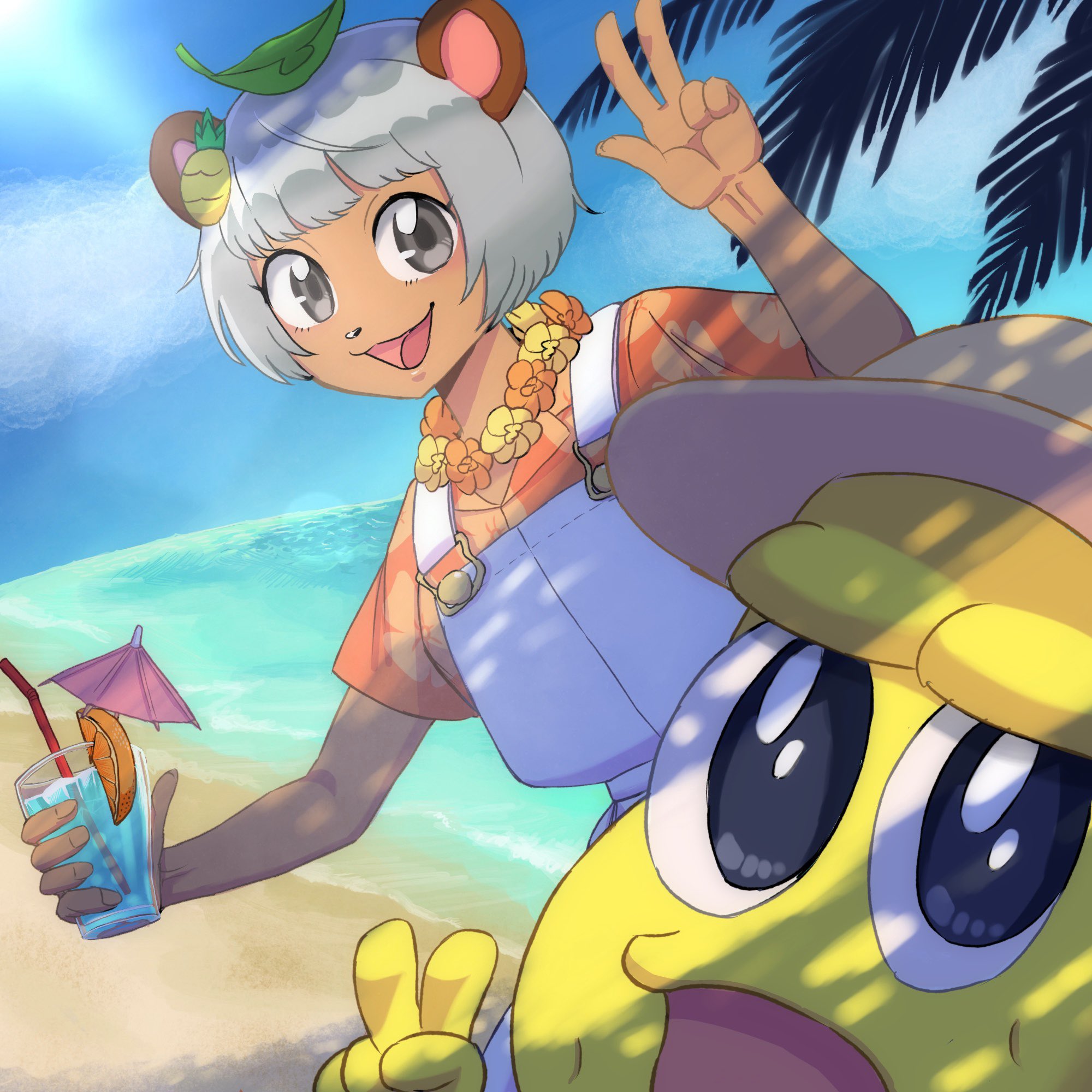 南国でハイチーズ!なぽんぽことピーナツくん 夏衣装可愛すぎ!小麦肌好き〜 #オシャレになりたいピーナッツくん #ぽこあーと