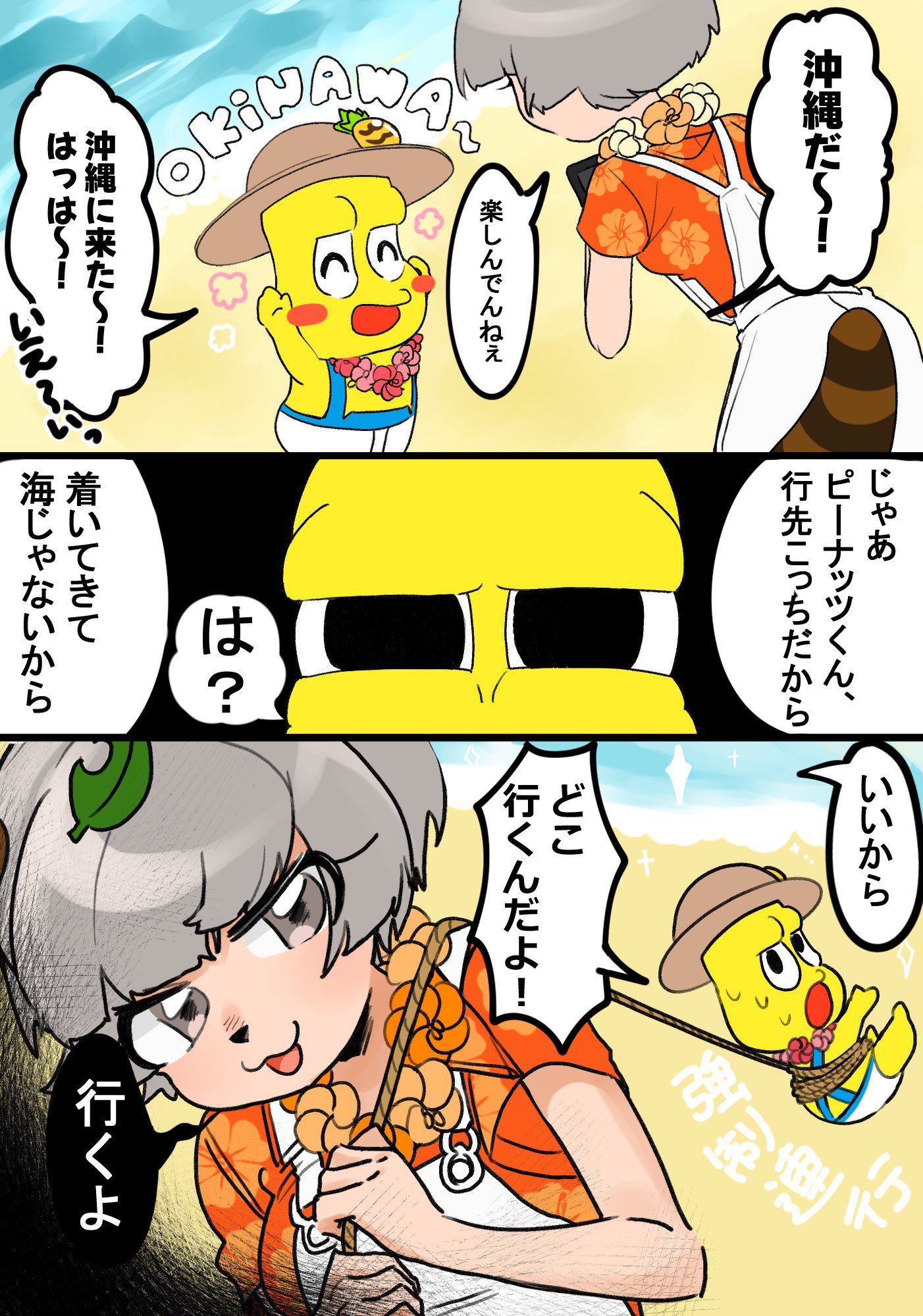 沖縄の綺麗な海からお化け屋敷に無理やり連れてかれちゃう🥜くん好き #ぽこあーと #オシャレになりたいピーナッツくん